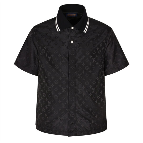 루이비통 모노그램 무아레 자카드 실크 반팔 셔츠입니다. 고급 실크 소재로 제작된 기능성 남녀 공용 상의입니다.