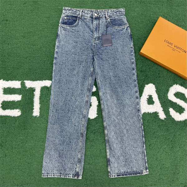 - 루이비통 브랜드의 데님 팬츠로 캐주얼한 스케이트 스타일에 적합합니다.