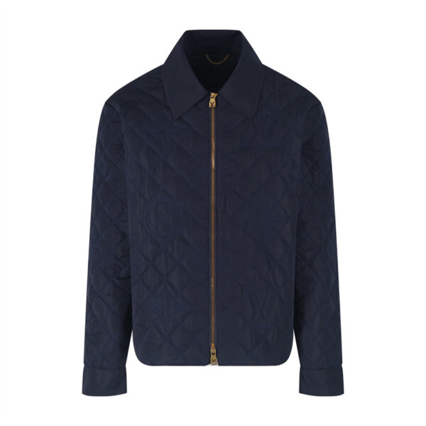 - 퀼티드 디자인과 모노그램 패턴이 적용된 구조적 셔츠입니다.