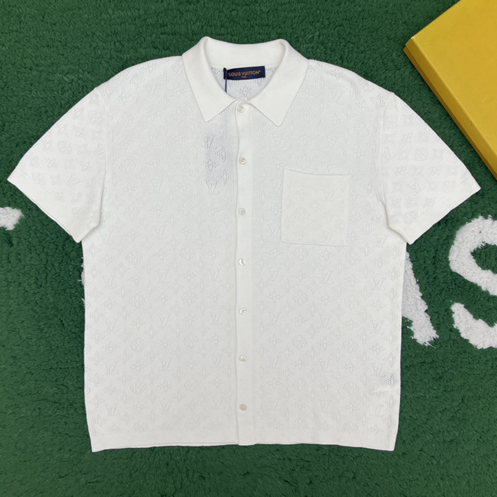 - 루이비통 브랜드의 모노그램 패턴이 적용된 코튼 숏슬리브 셔츠입니다.