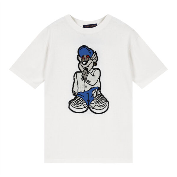 - 루이비통의 캐릭터 옵티컬 그래픽 반소매 니트로, 캐주얼 및 데일리 착용에 적합한 상의입니다.