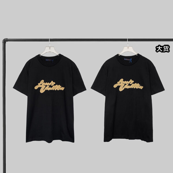 • 루이비통 브랜드 티셔츠로, 레터링과 엠브로이더드 시그니처 디자인이 적용된 상품입니다.