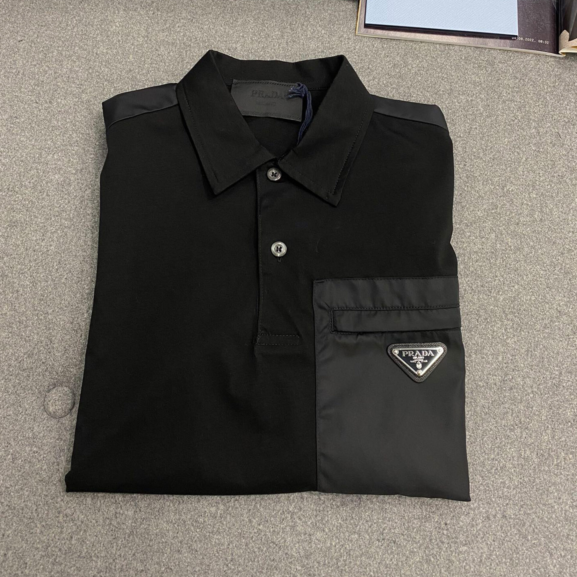 - 프라다의 폴로 스타일 반팔 셔츠로 캐주얼과 세미 캐주얼 모두에 적합합니다.