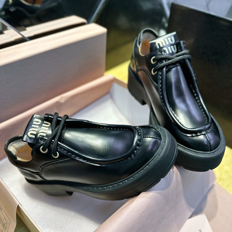 미우미우 【터보】 가죽 레이스업 더비 슈즈(TJ공장)