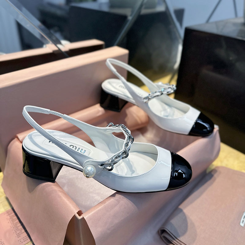 미우미우 【Hello】 투톤 페이턴트 레더 슬링백 펌프스 (터보)