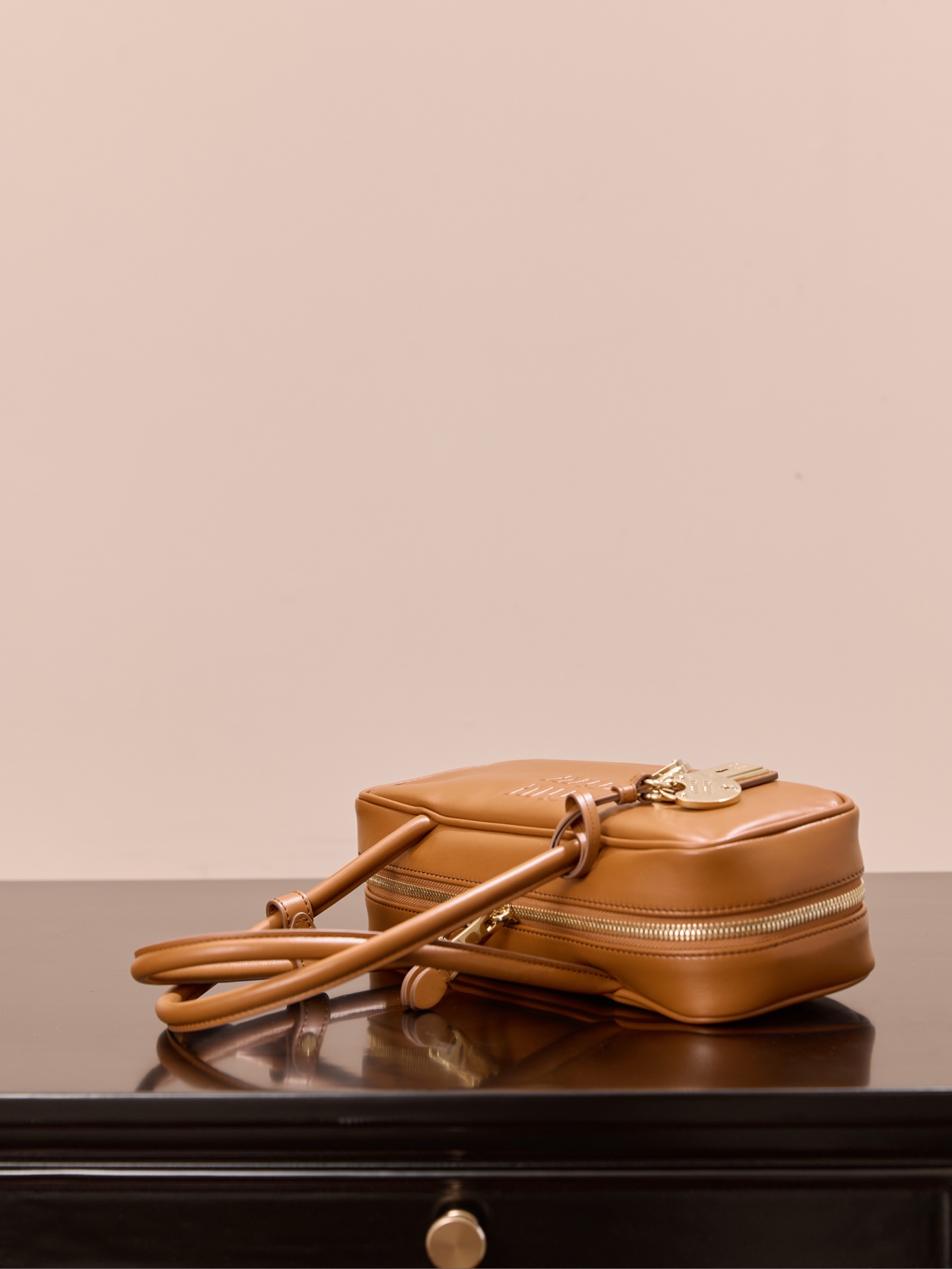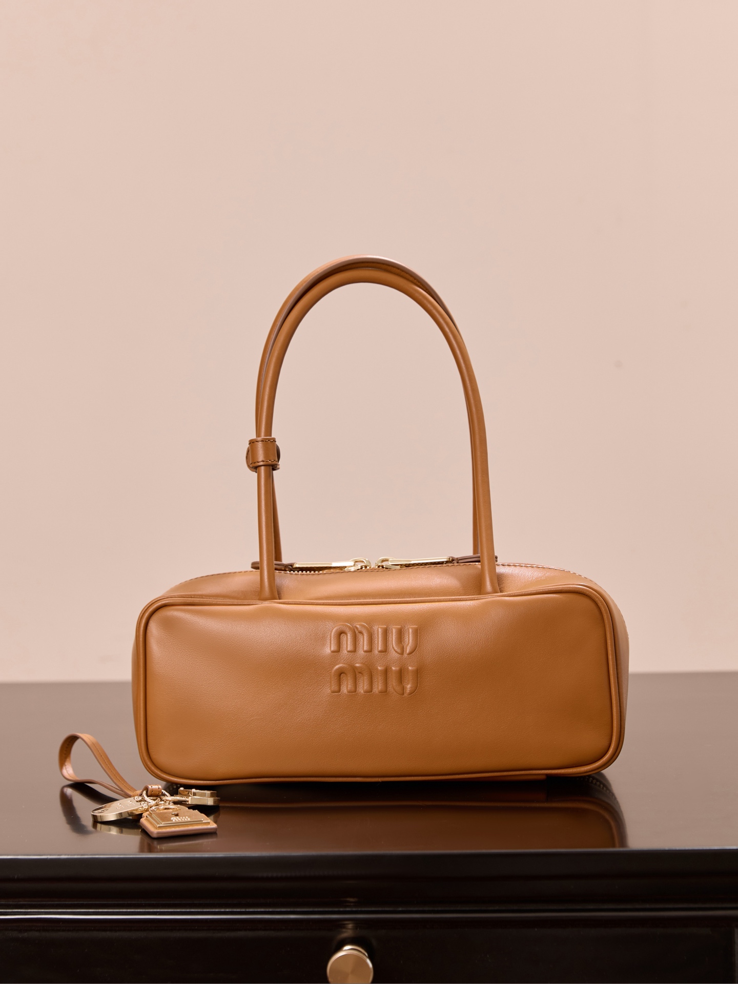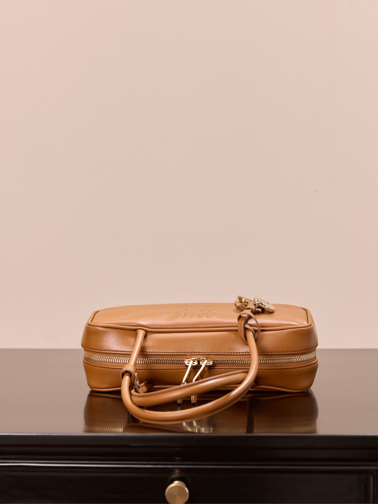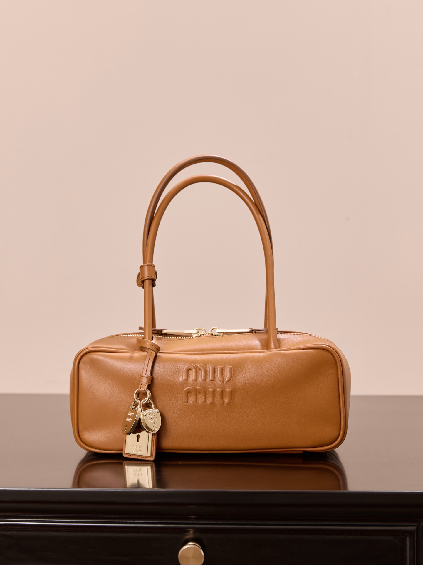 부드럽고 탄력 있는 소가죽 소재로 제작된 미우미우 비오 공문소가방입니다.