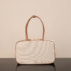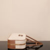 중성적인 색조와 대조적인 가죽 장식이 매력적이며, 빈티지와 스포티한 스타일을 동시에 느낄 수 있습니다.