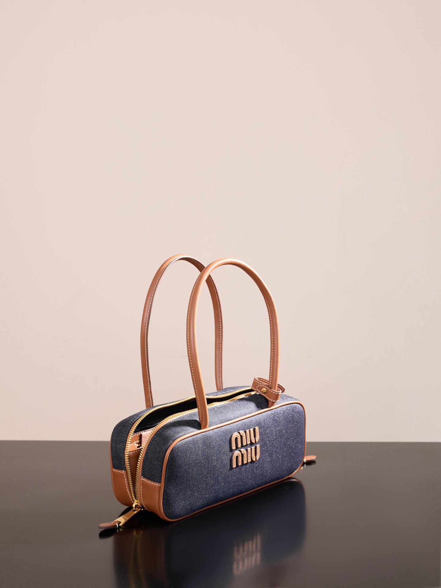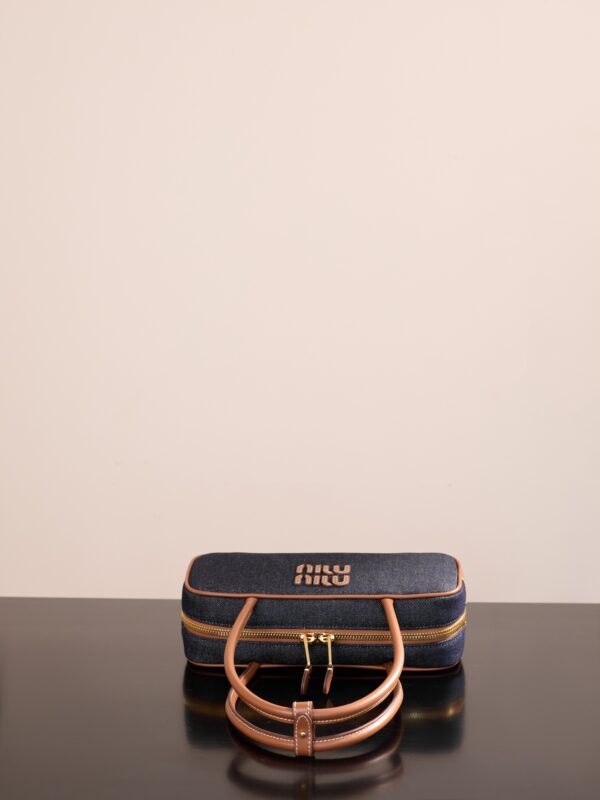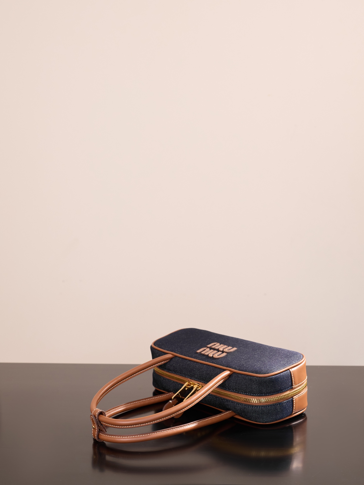 부드러운 데님 소재로 제작된 미우미우 비오 중형 공문백입니다.