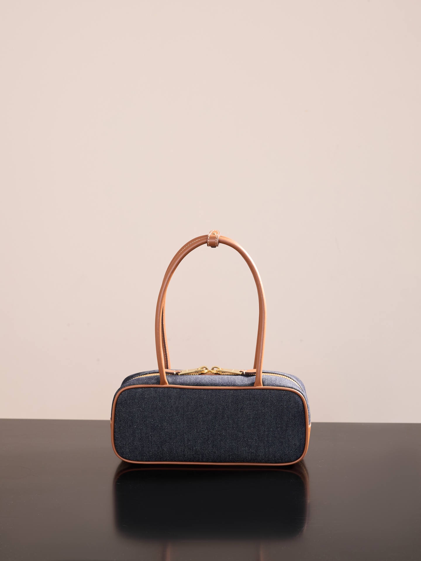 데님 블루 색감이 세련된 느낌을 주며, 정교한 디테일이 돋보입니다.