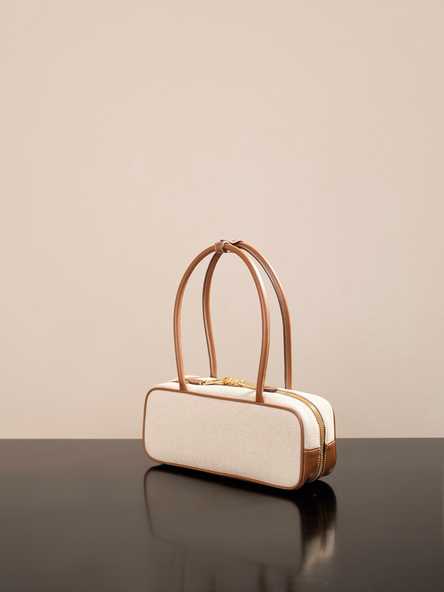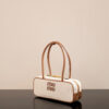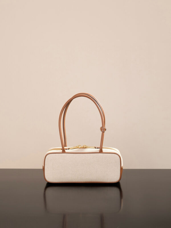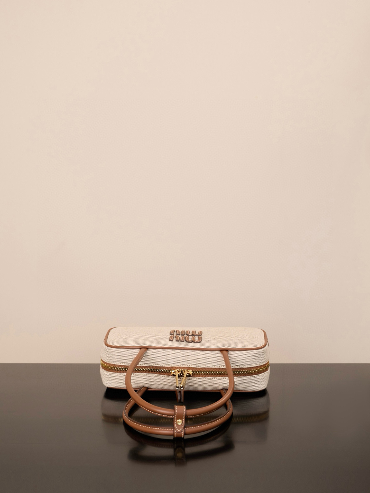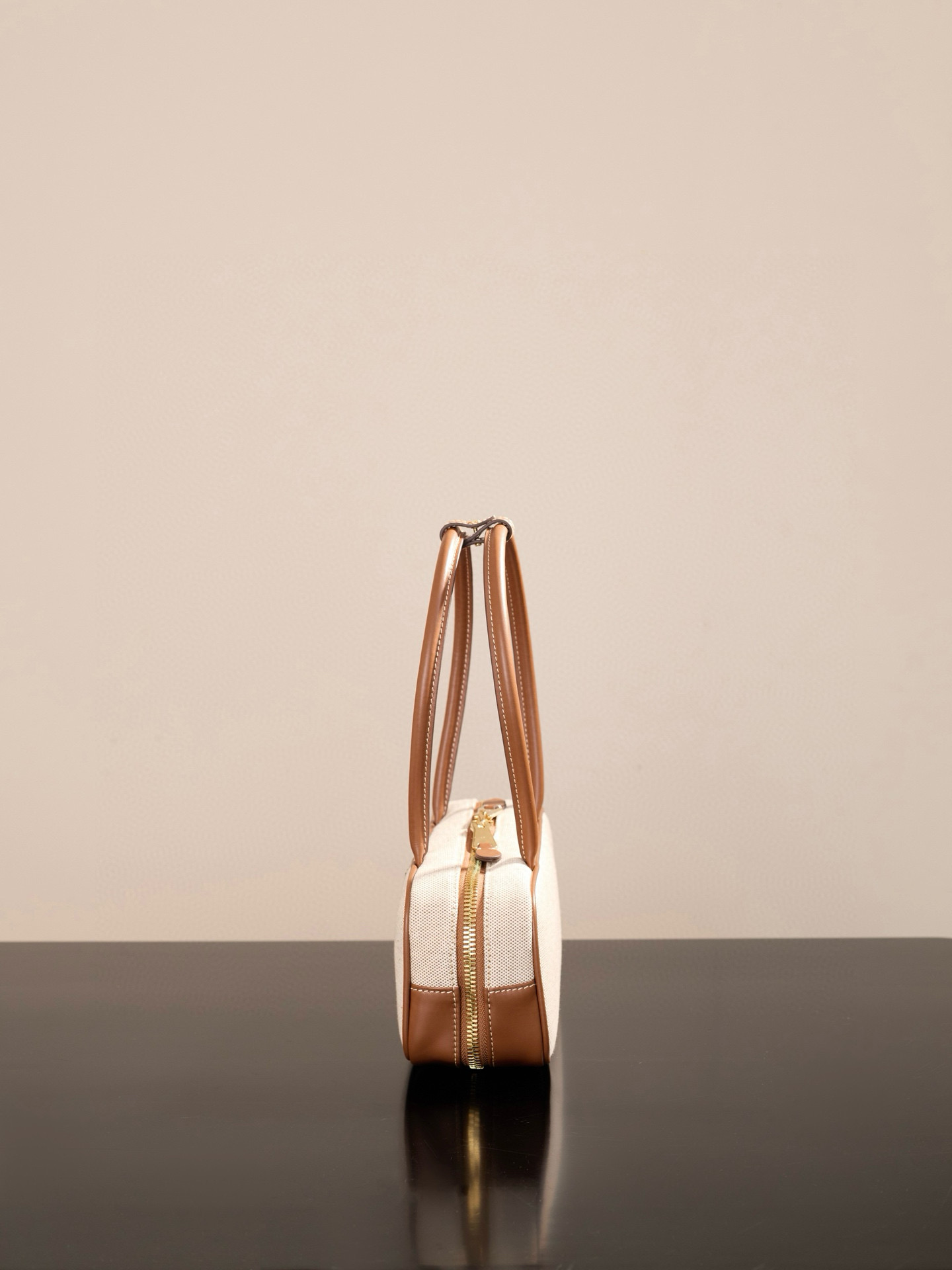 부드러운 크림 색상의 캔버스 소재로 제작된 비오 중형 백입니다.