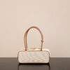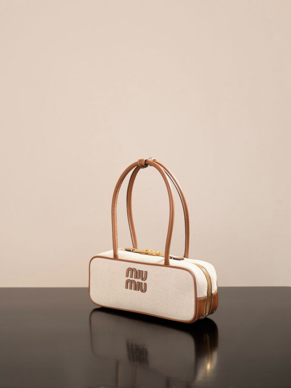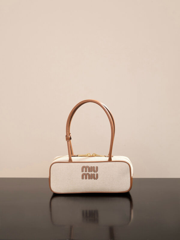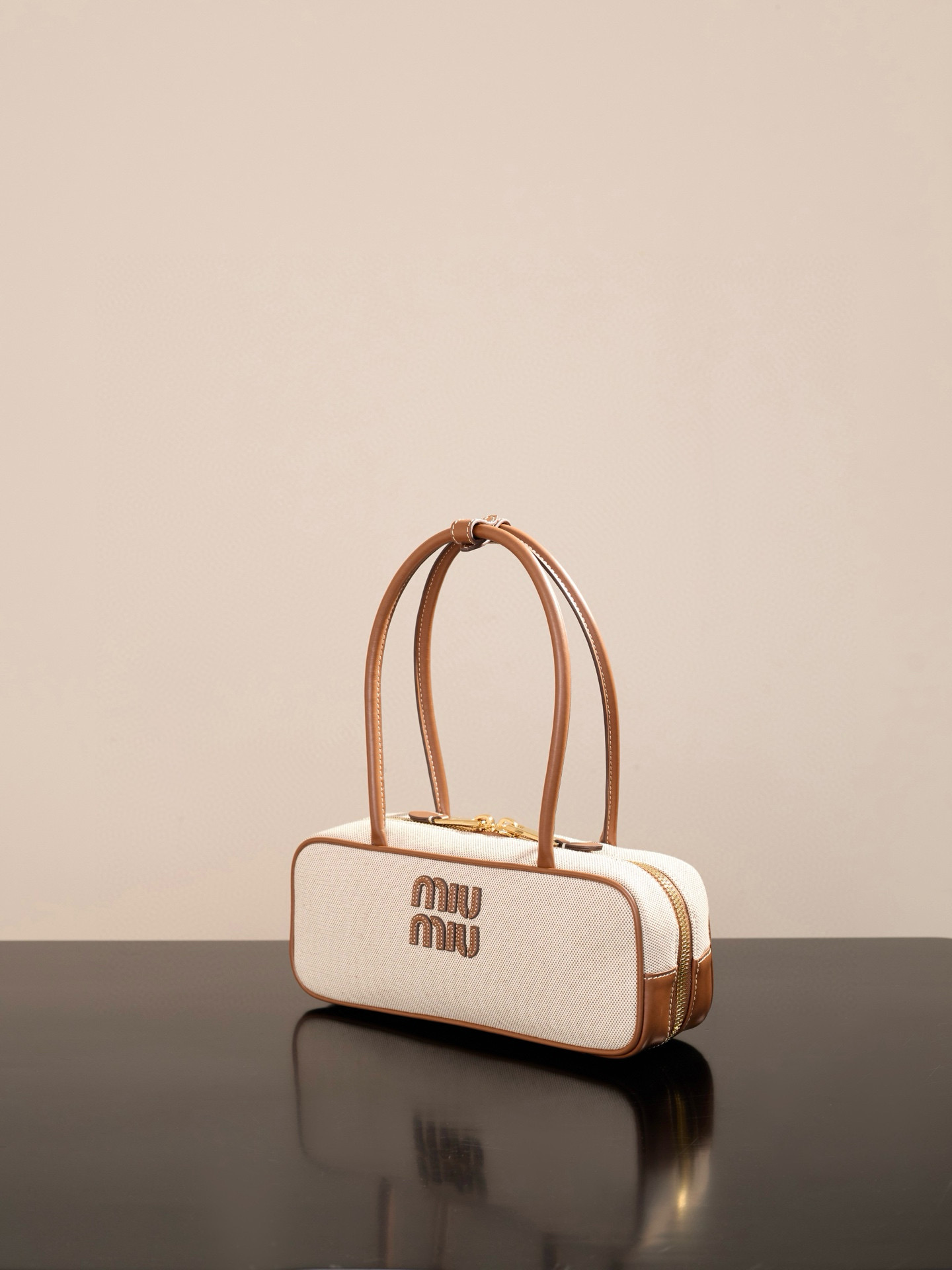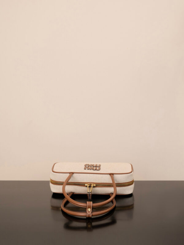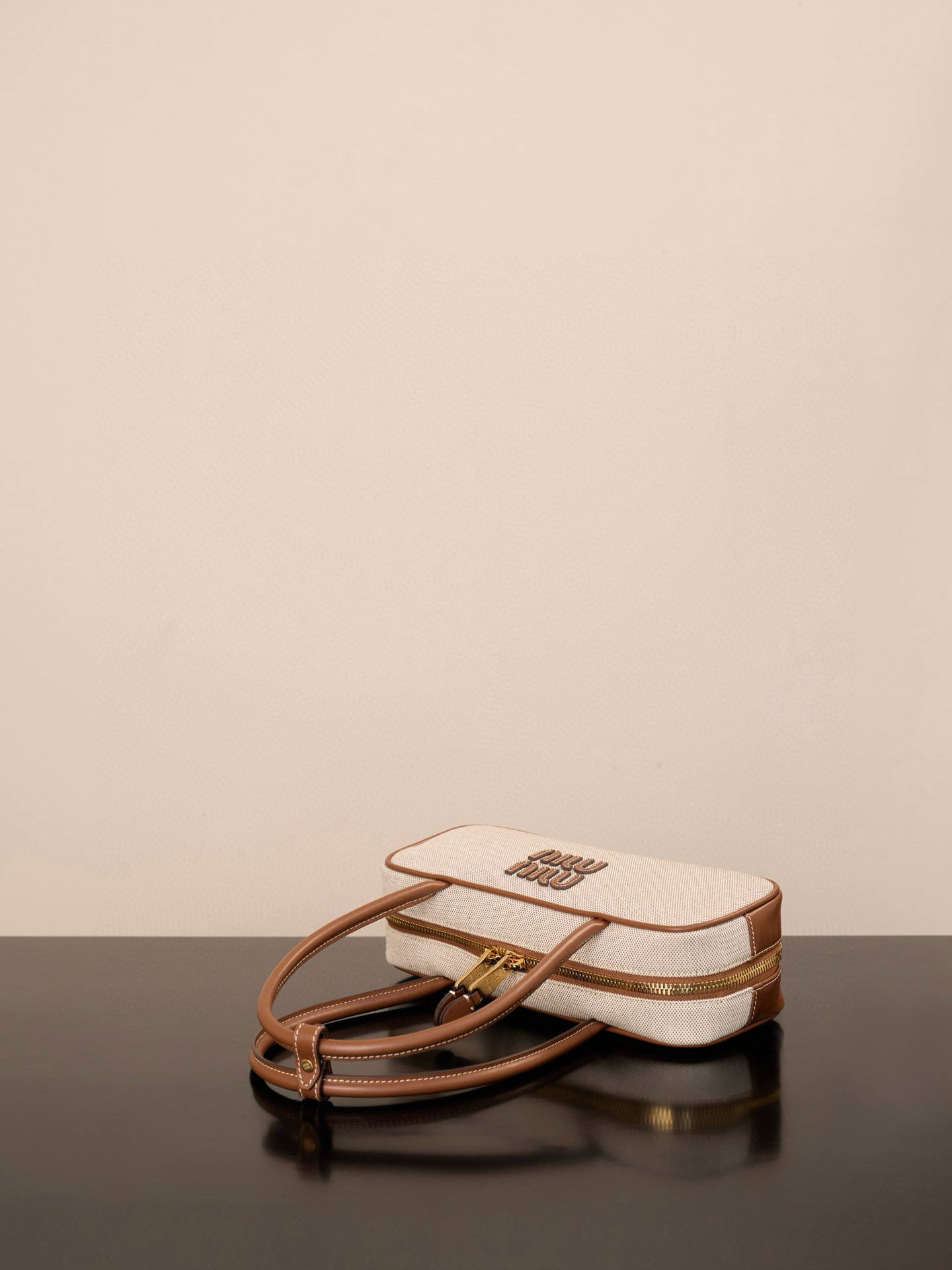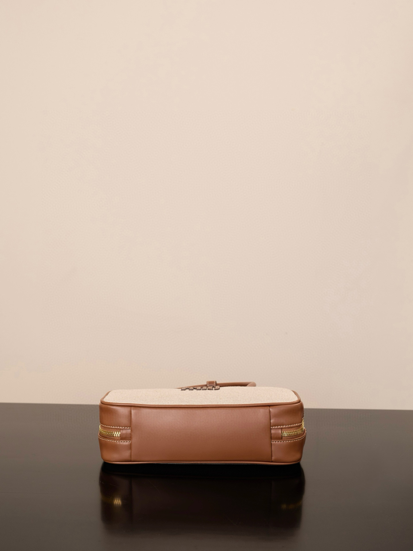 부드러운 크림 색상의 캔버스 소재로 제작된 비오 중형 백입니다.