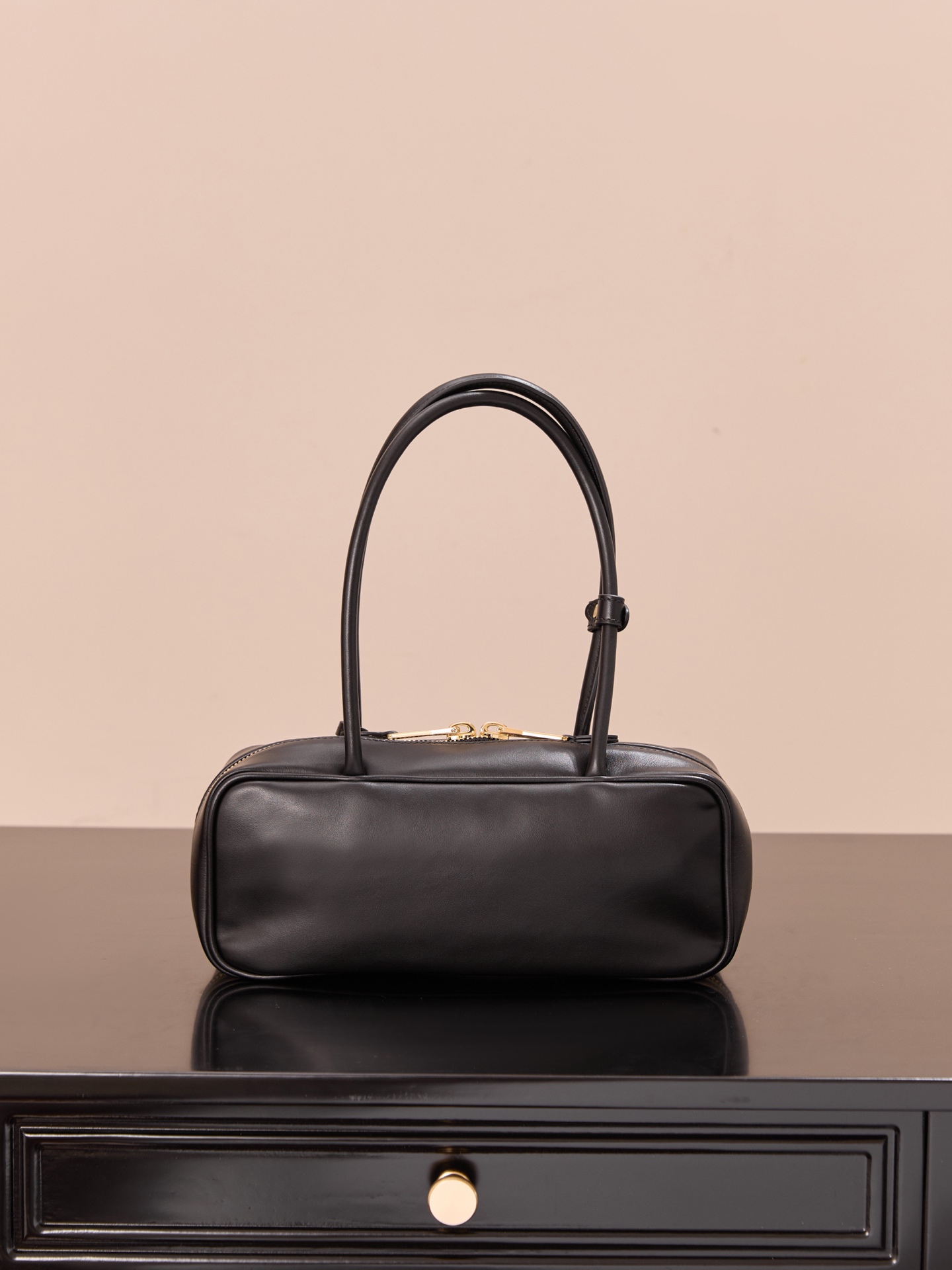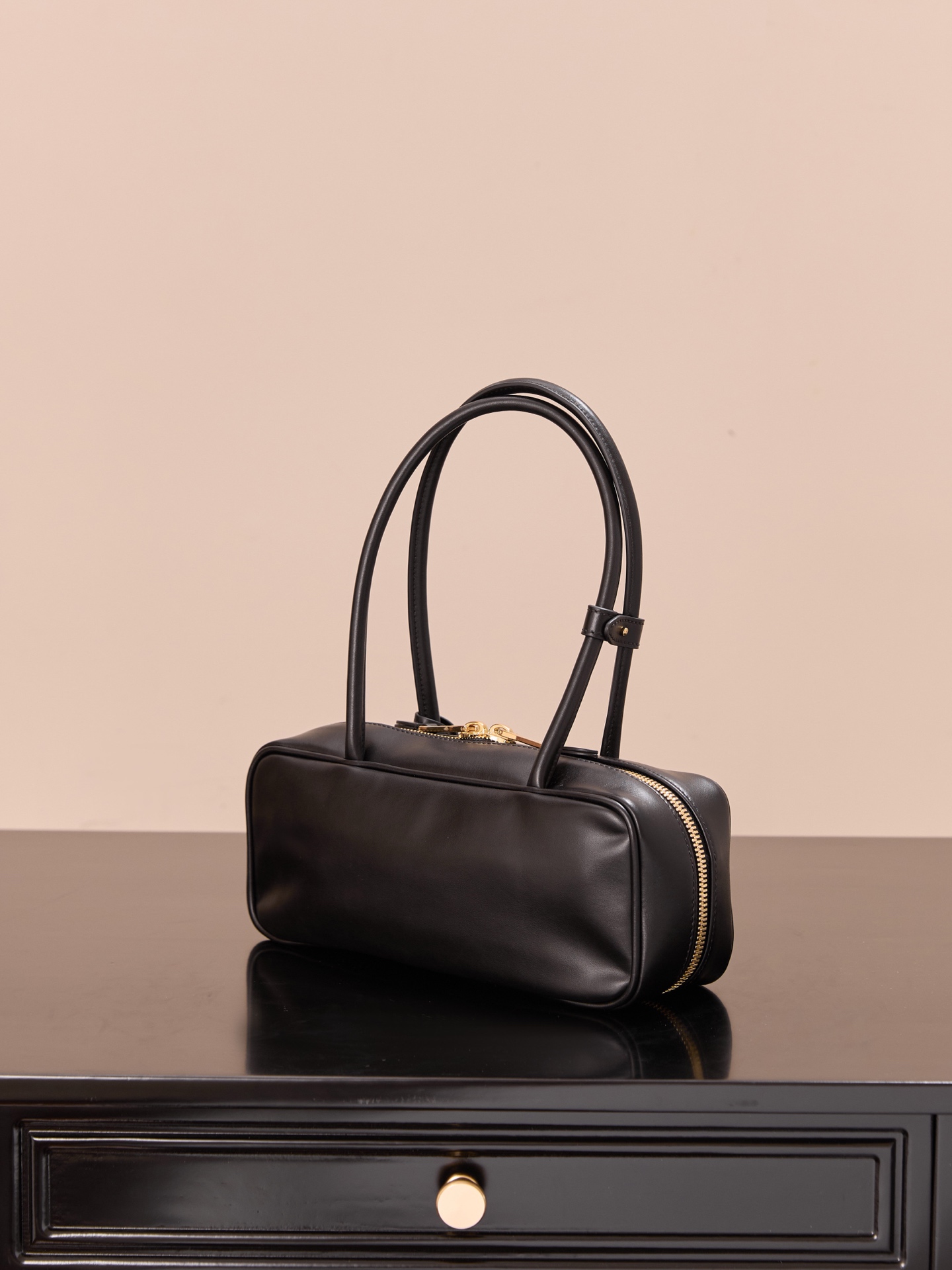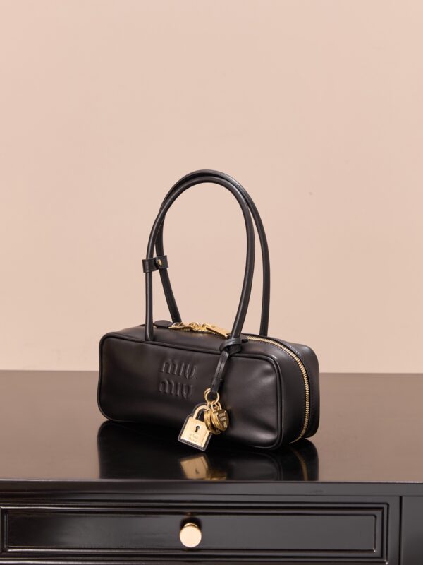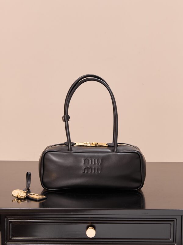 부드럽고 탄력 있는 소가죽 소재로 제작된 미우미우 비우 소형 백입니다.