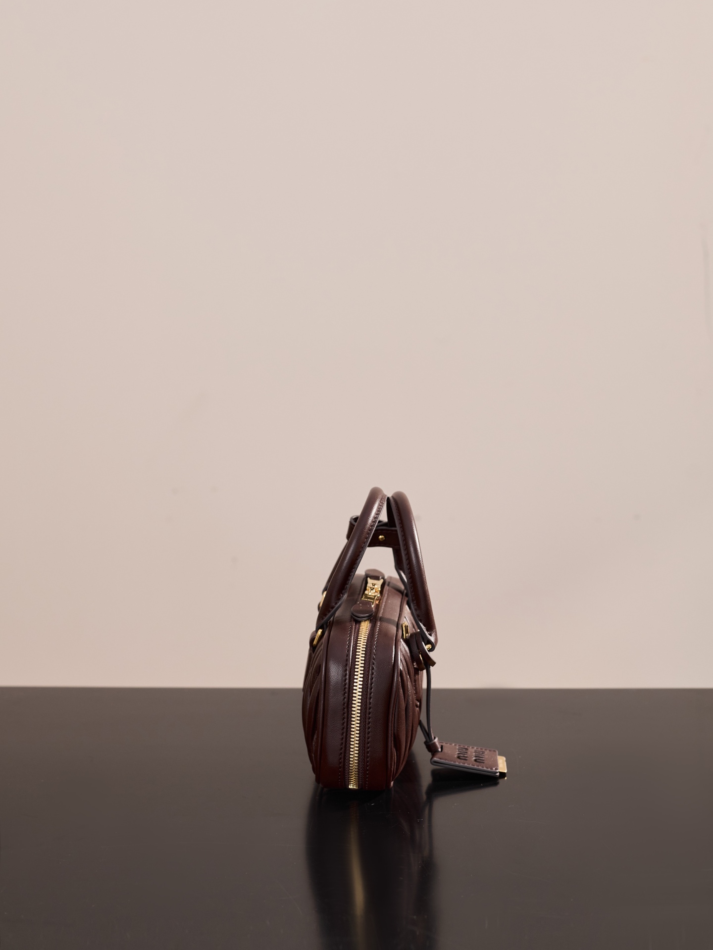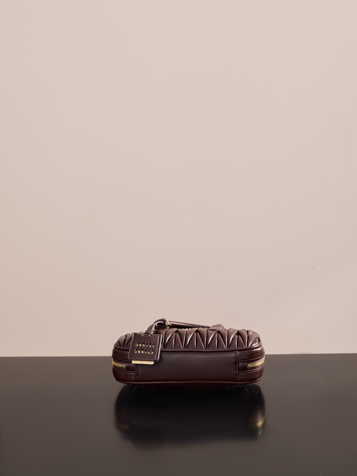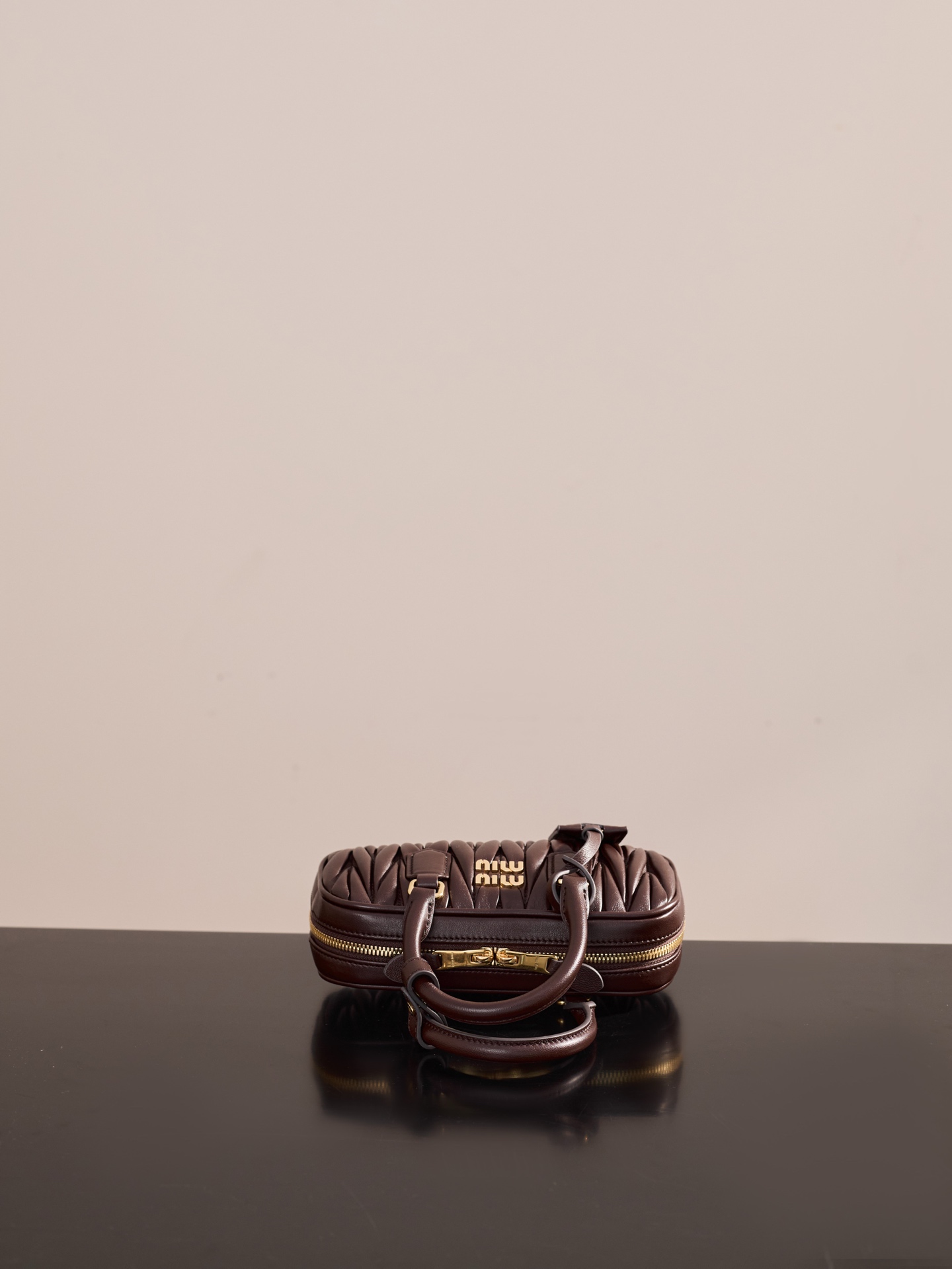 미우미우의 아르카디에 미니 백은 석송색의 부드러운 양가죽으로 제작되었습니다.