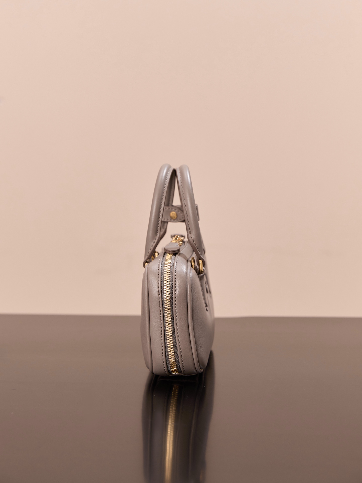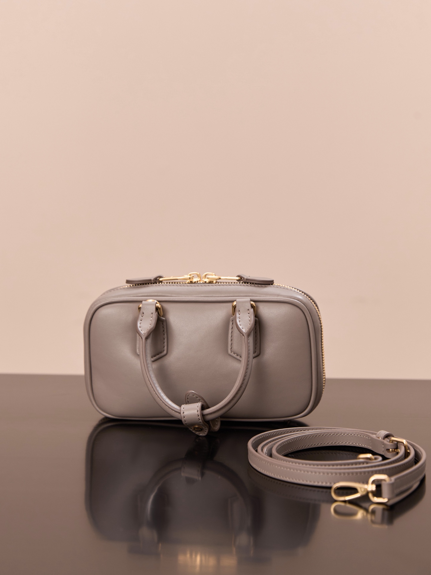 소가죽으로 제작된 미니백으로, 부드러운 질감이 특징입니다.
