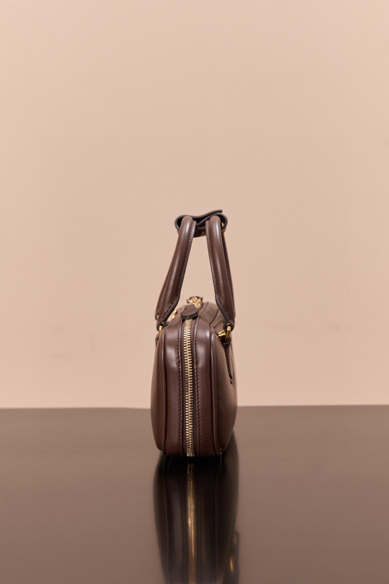 소가죽 소재로 제작된 미니백으로, 가벼운 패딩이 더해져 더욱 풍성한 느낌을 줍니다.