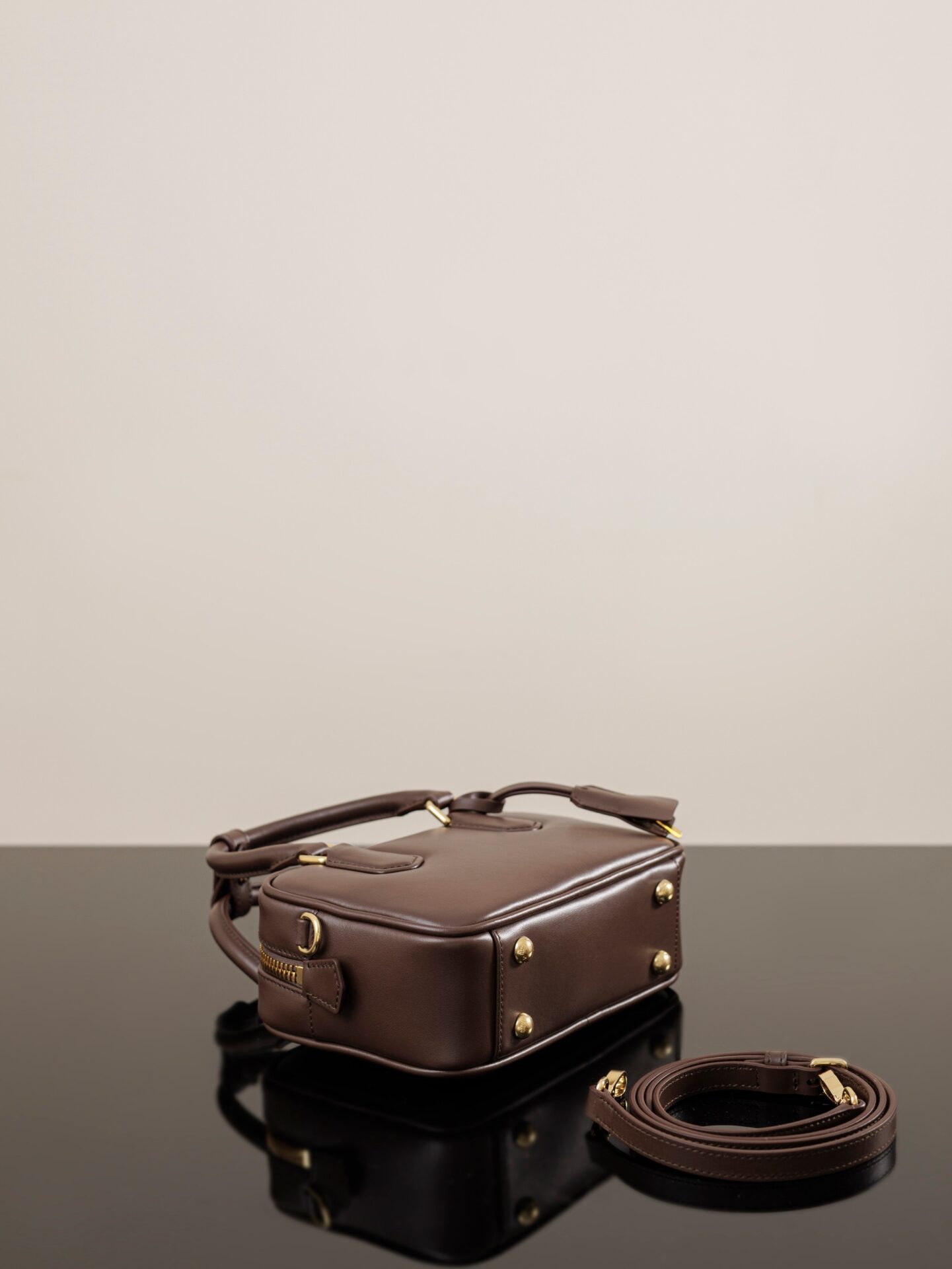 정면의 금속 로고와 빈티지한 하드웨어가 포인트가 되어 세련된 느낌을 더해줍니다. 내부에는 정돈된 수납을 위한 포켓이 있어 실용성을 갖추고 있습니다.