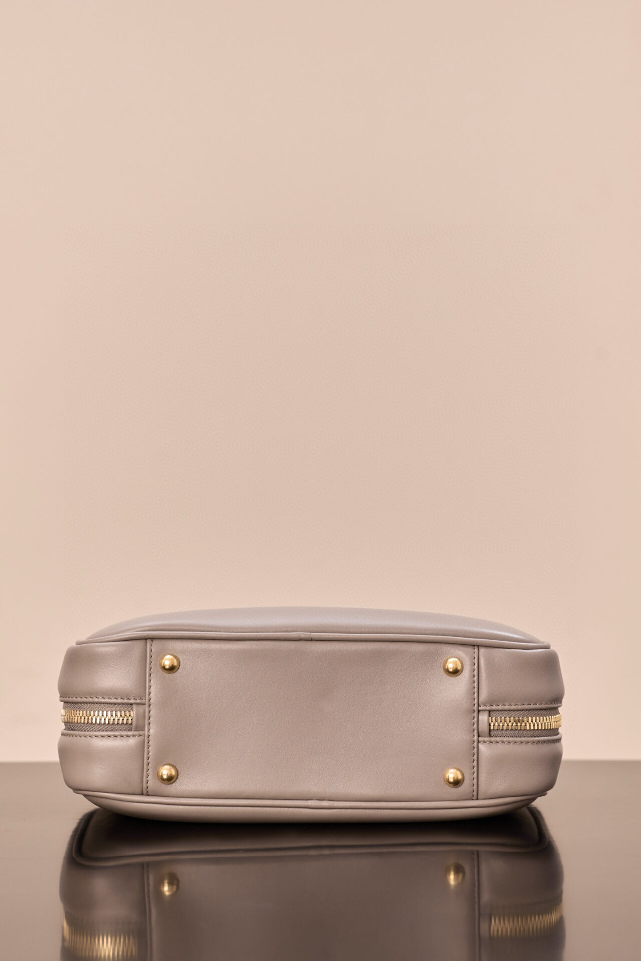 세련된 그레이 컬러와 함께 풍성한 디자인이 매력적이며, 정면에는 고급스러운 금속 로고가 포인트로 자리잡고 있습니다.