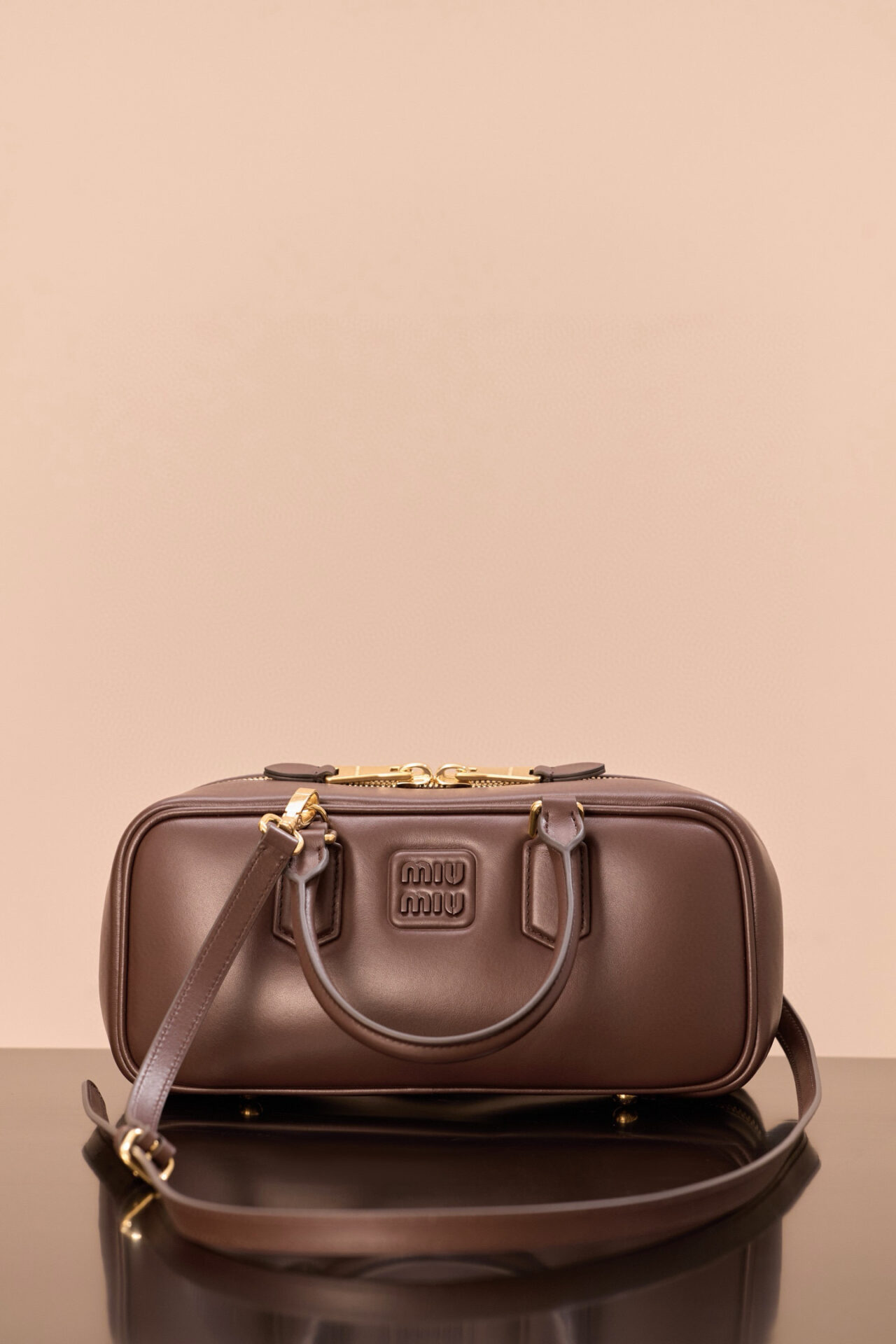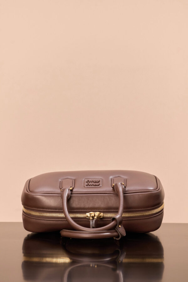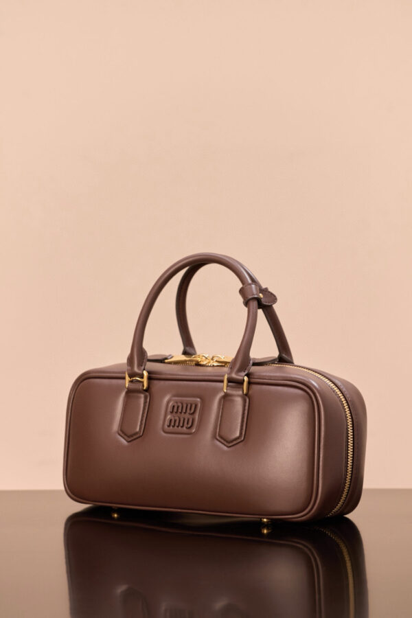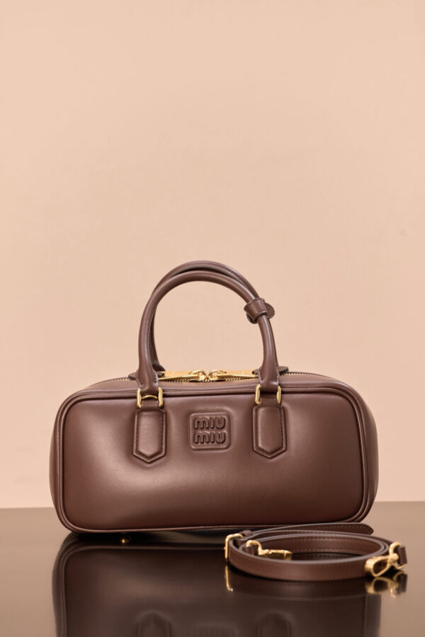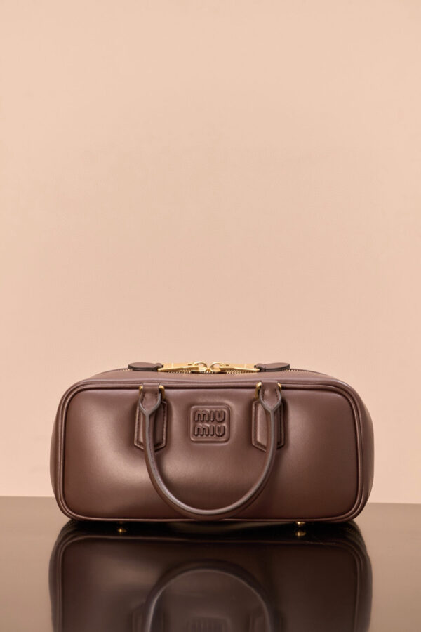 부드러운 소가죽으로 제작된 미우미우 아르카디에 백은 세련된 석송색으로 어떤 스타일에도 잘 어울립니다.