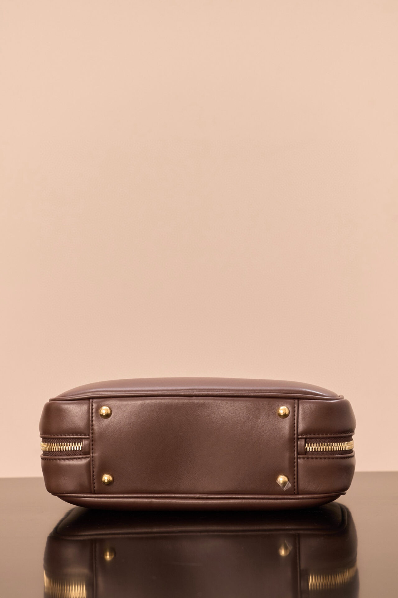 정면에는 고급스러운 금속 로고가 장식되어 있어 포인트를 주며, 내부에는 지퍼 포켓이 있어 소지품을 안전하게 보관할 수 있습니다.