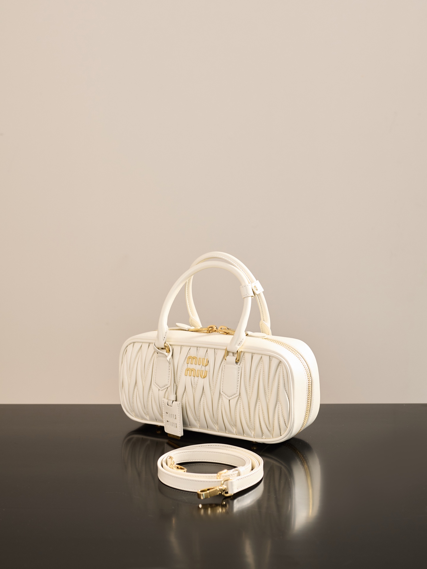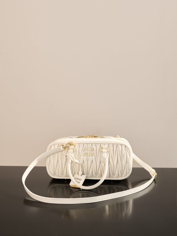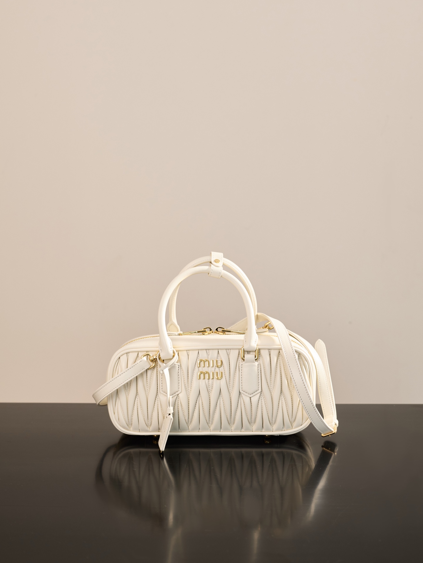부드러운 양가죽으로 제작된 미우미우 아르카디에 백은 현대적인 매력을 지닌 디자인입니다.