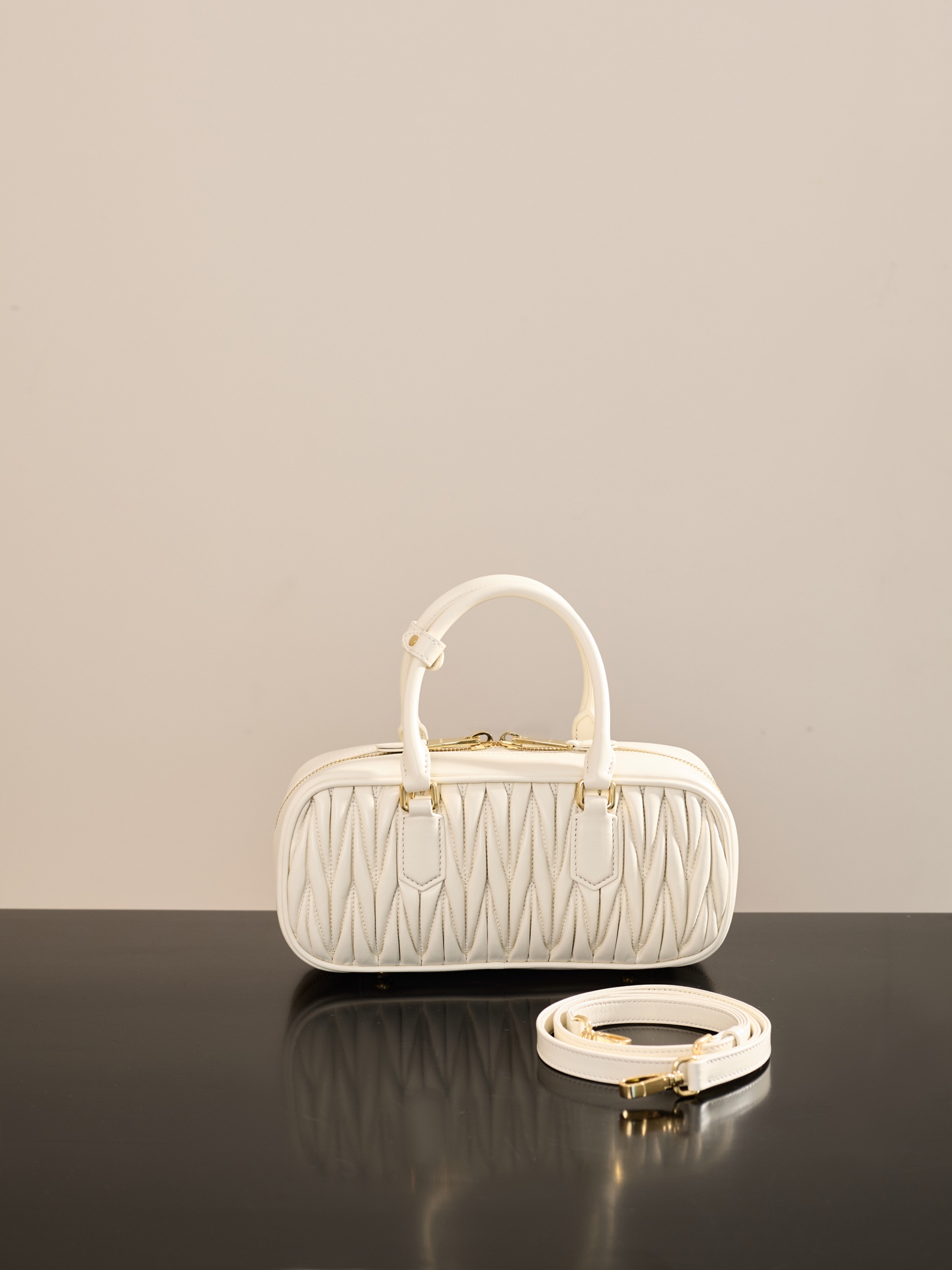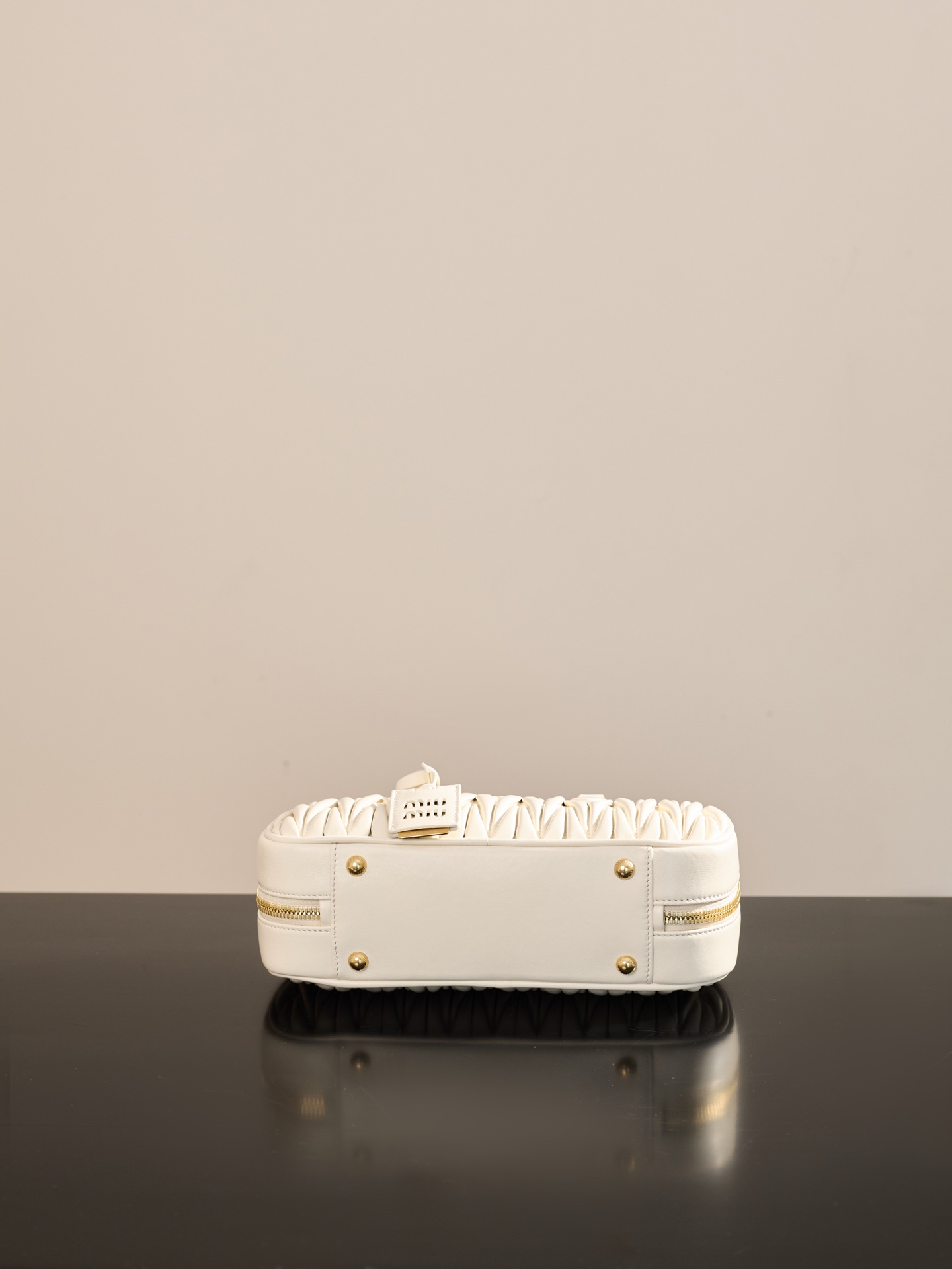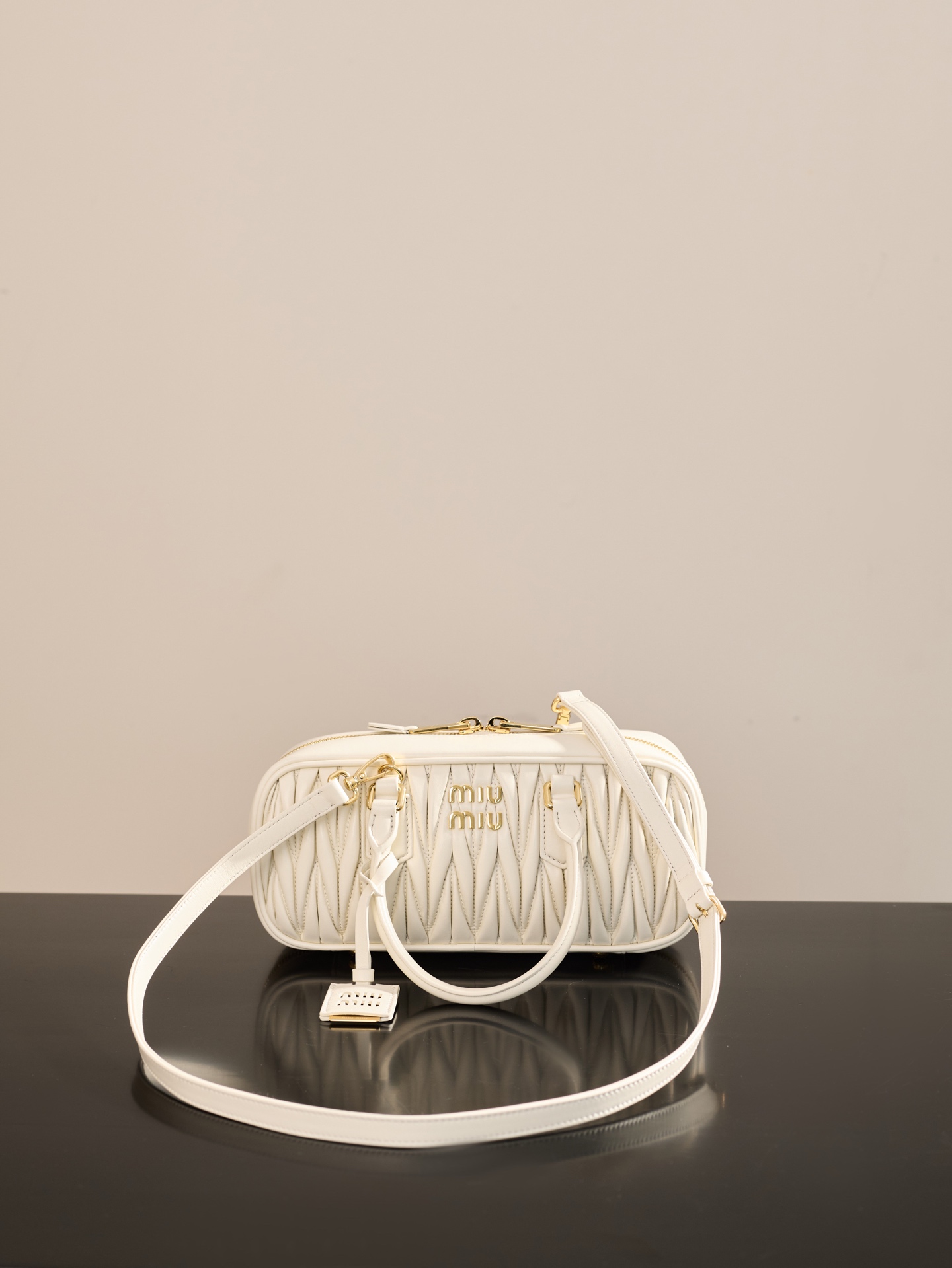 부드러운 양가죽으로 제작된 미우미우 아르카디에 백은 현대적인 매력을 지닌 디자인입니다.