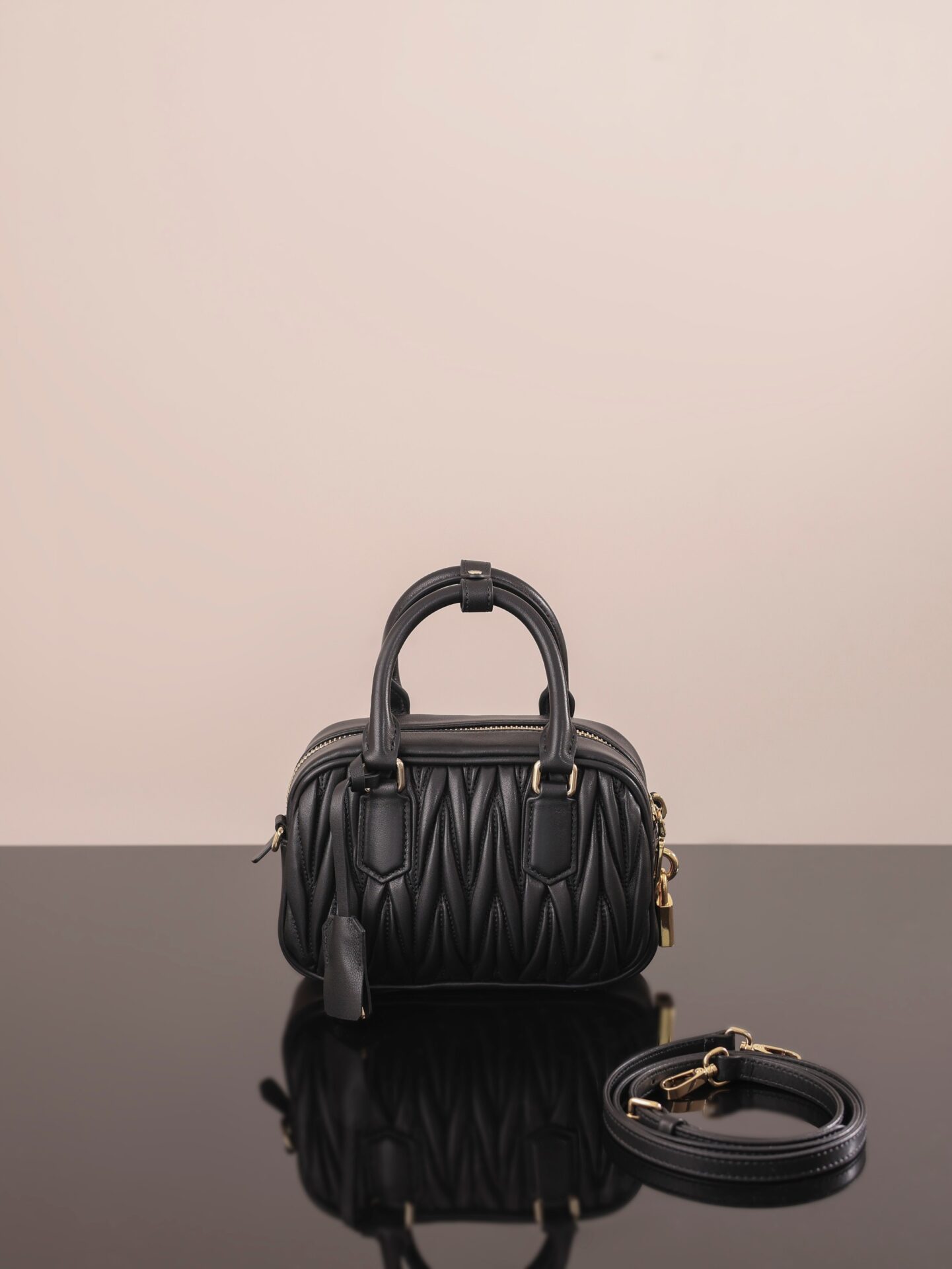 입체적인 퀼팅 디테일이 고급스러움을 더하며, 금색 하드웨어가 포인트가 되어 세련된 느낌을 줍니다.