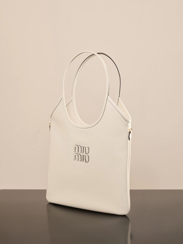 소가죽으로 제작된 미우미우 아이비 대형 토트백은 고급스러운 질감을 자랑합니다.
