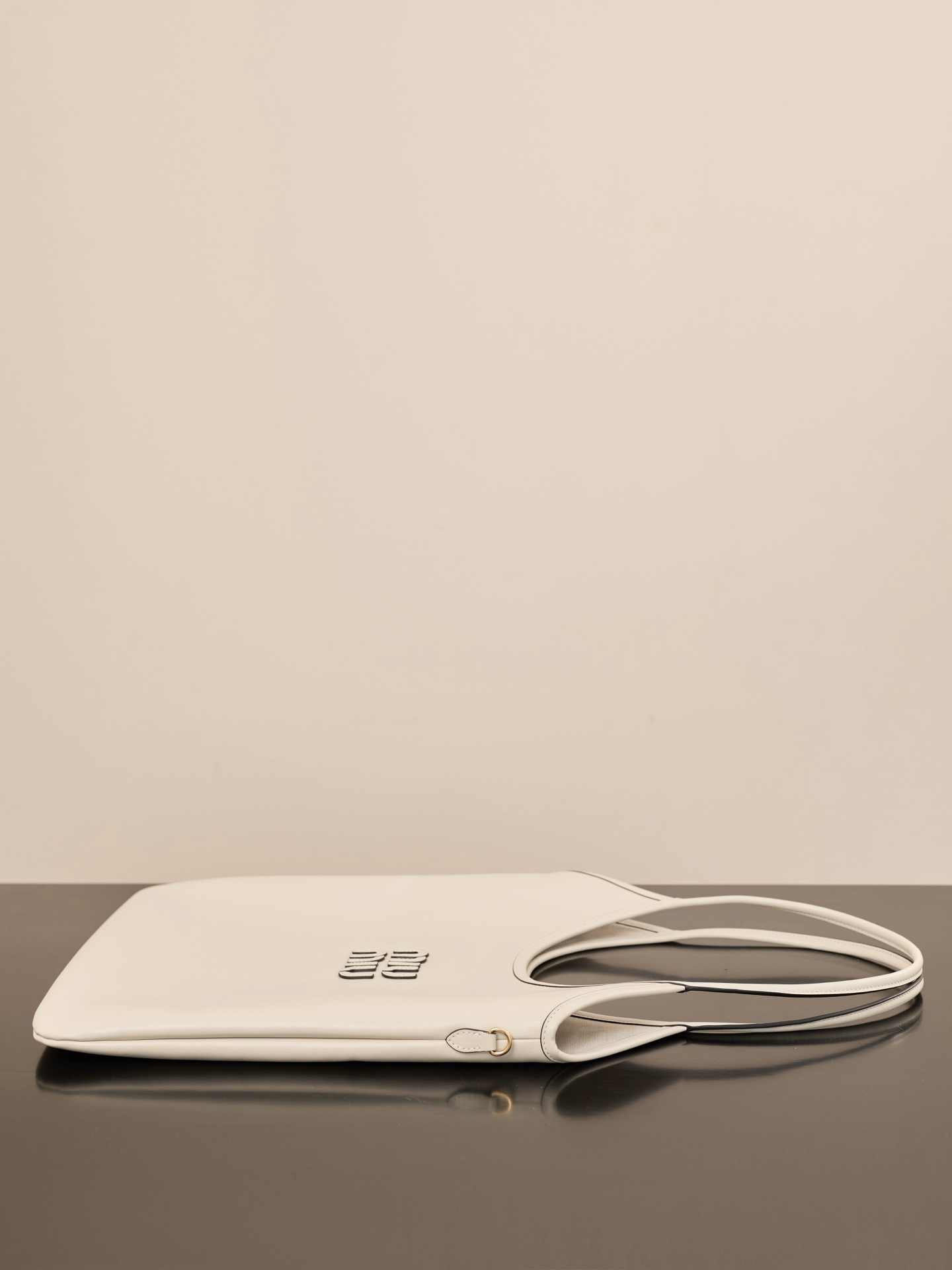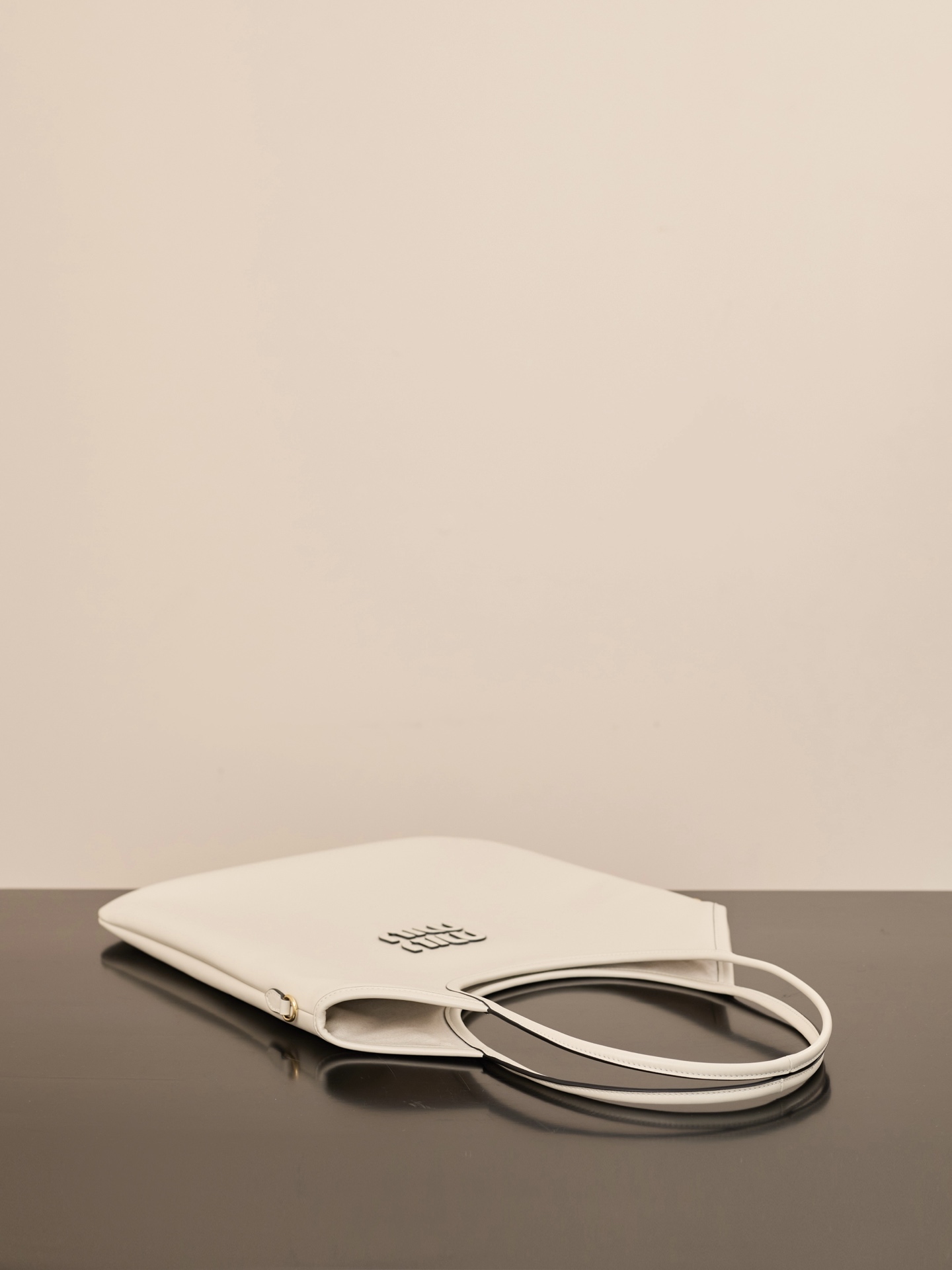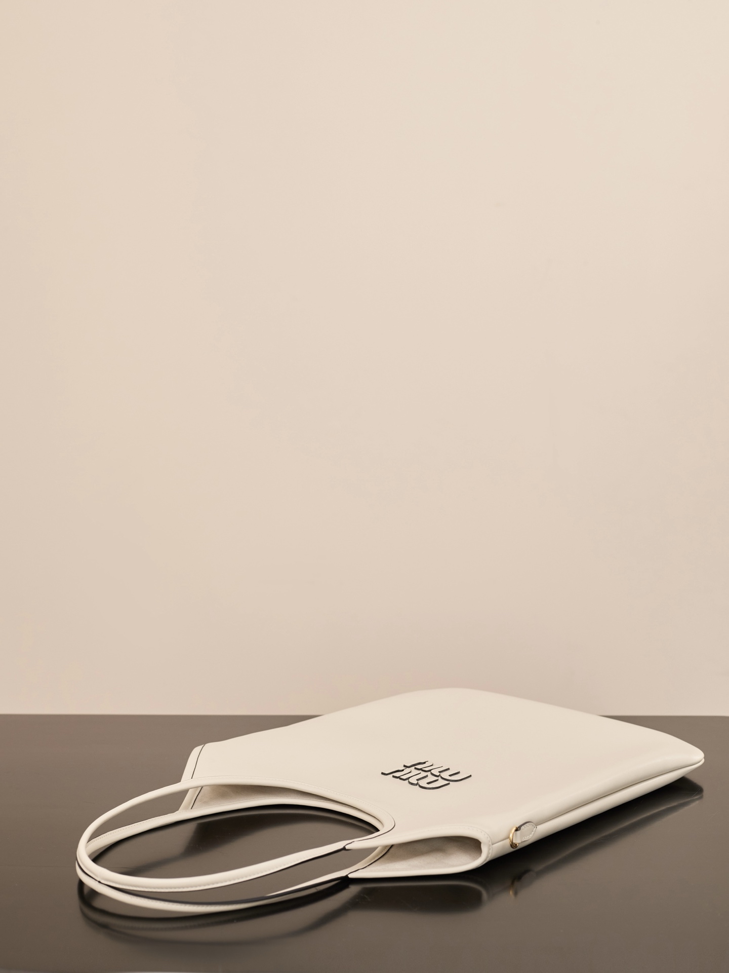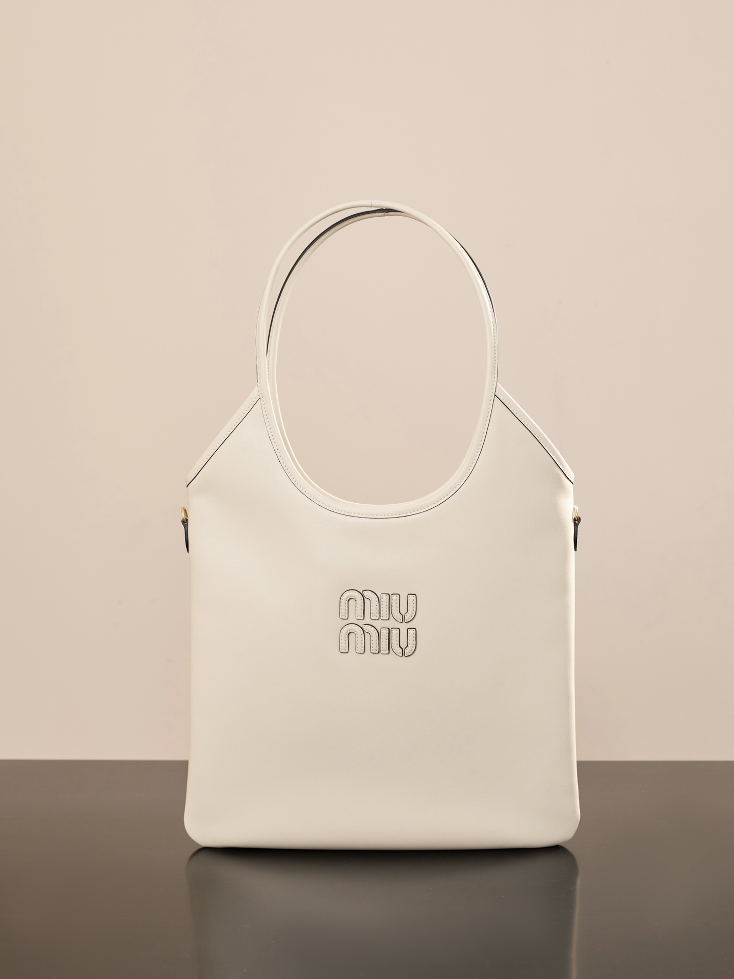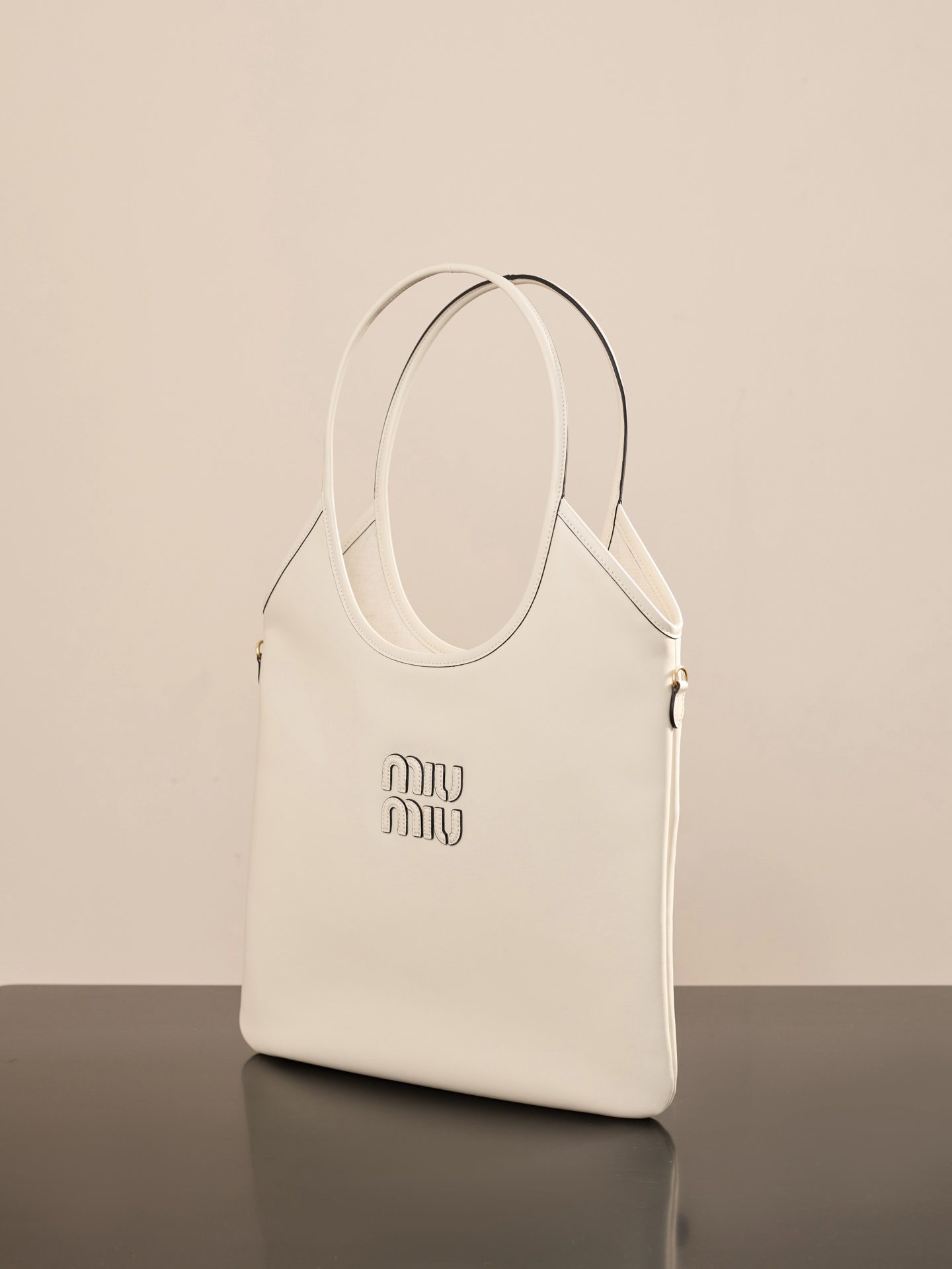 소가죽으로 제작된 미우미우 아이비 대형 토트백은 고급스러운 질감을 자랑합니다.