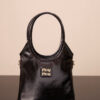 미우미우 아이비 미니백은 고급스러운 유광 가죽으로 제작되어 빛나는 광택이 특징입니다.
