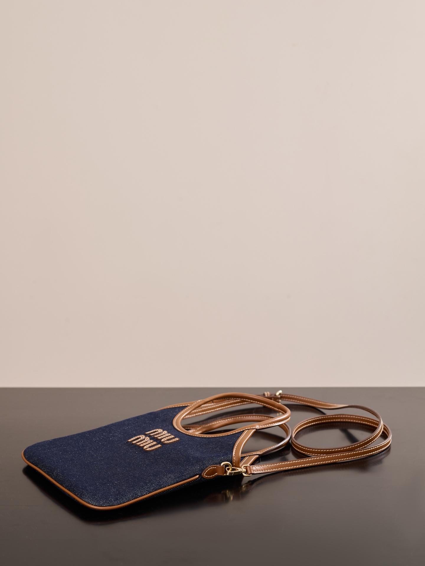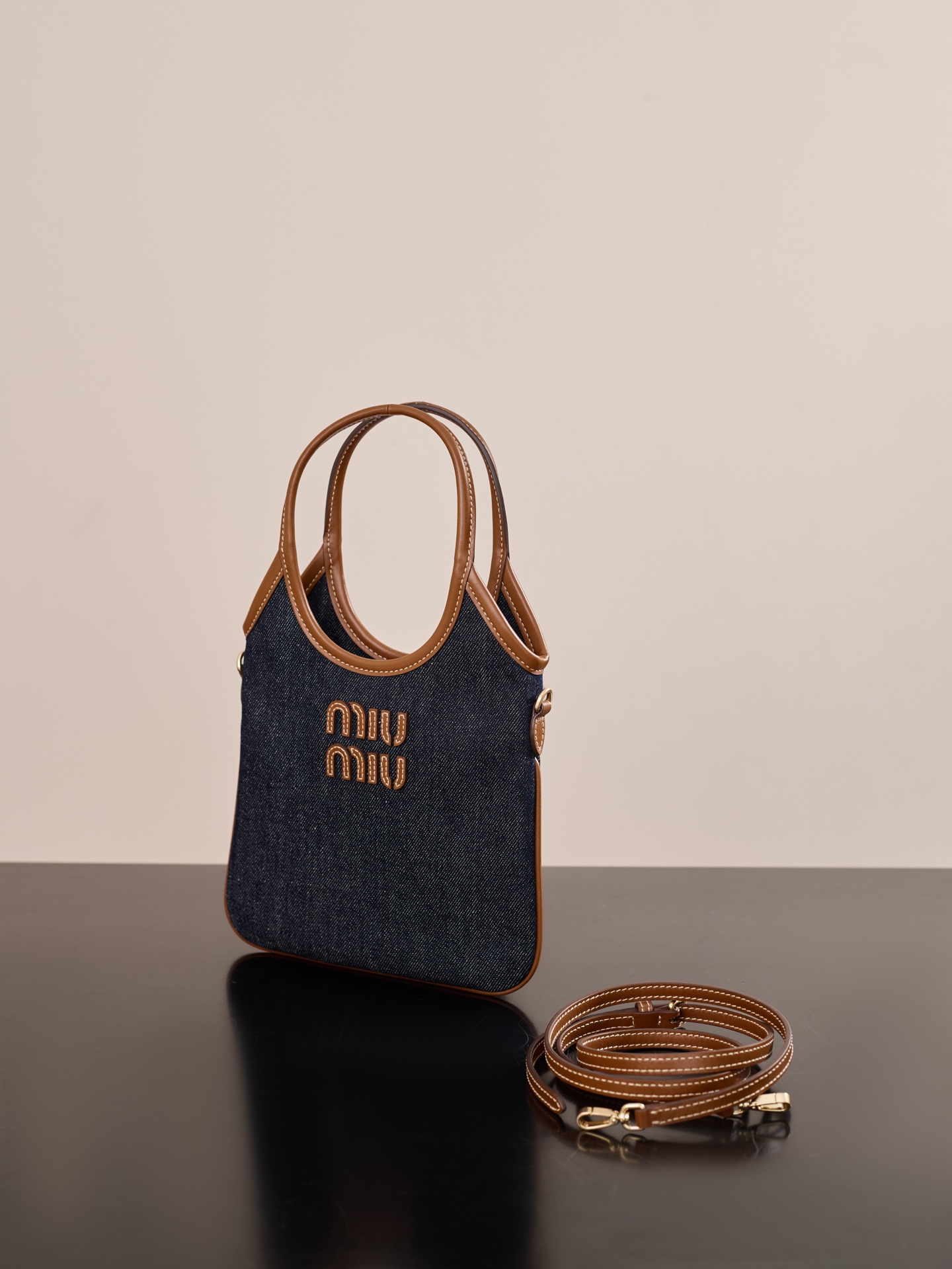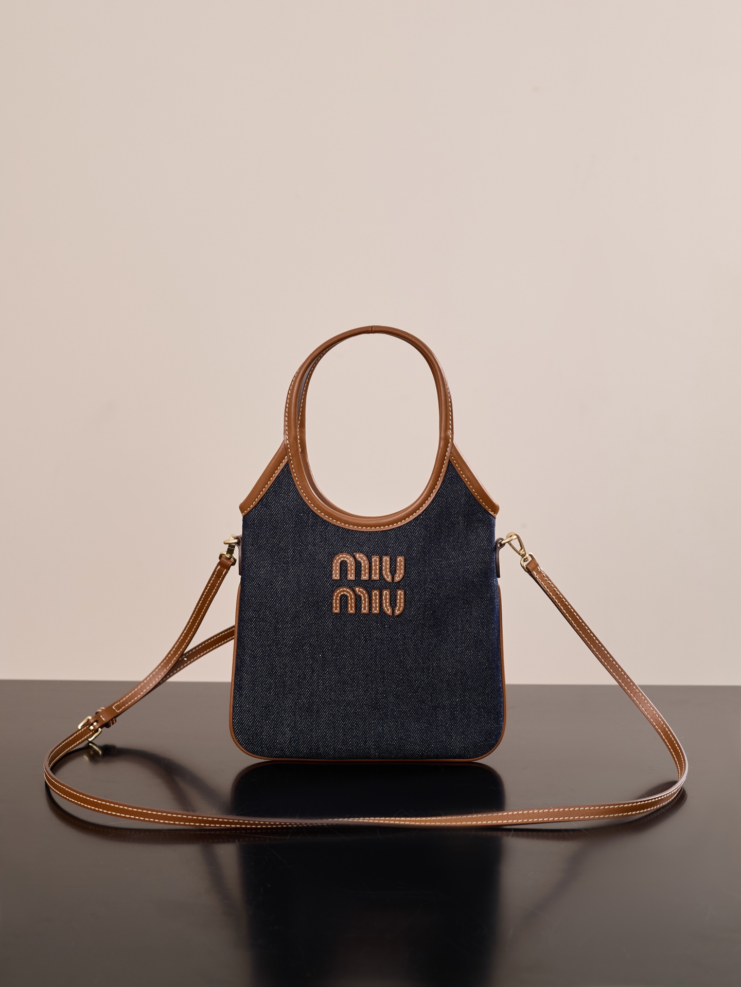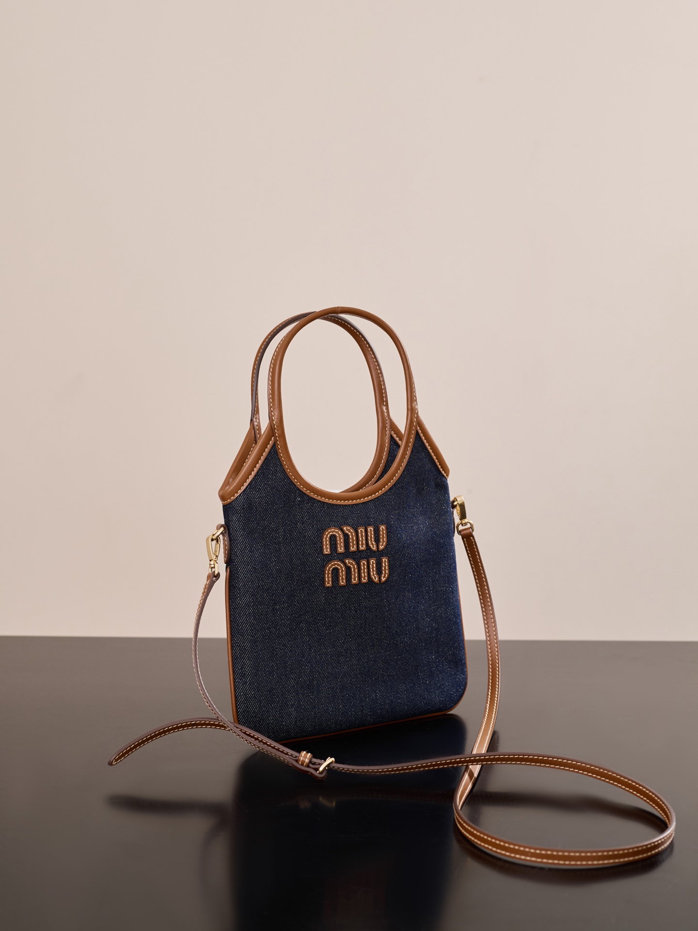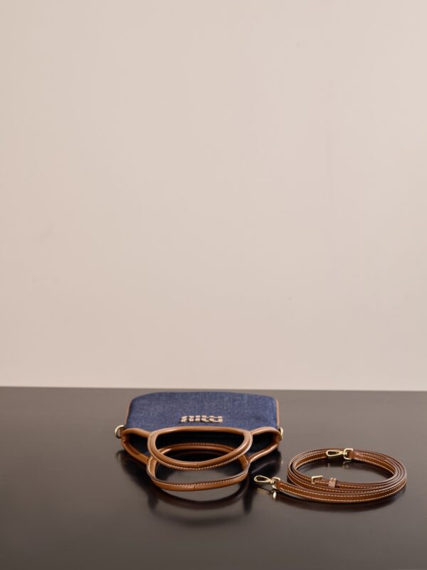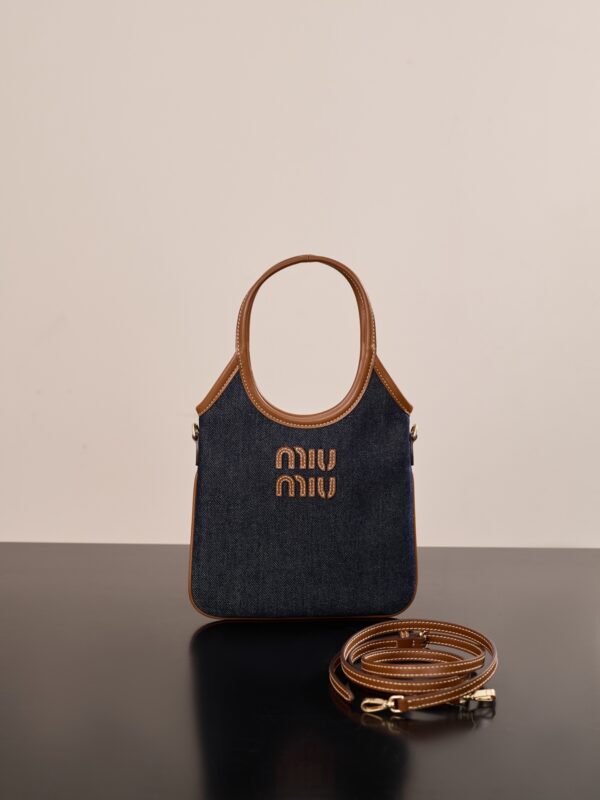 미우미우 아이비 미니 토트백은 고급스러운 데님 소재와 소가죽의 조화로 완성된 제품입니다.