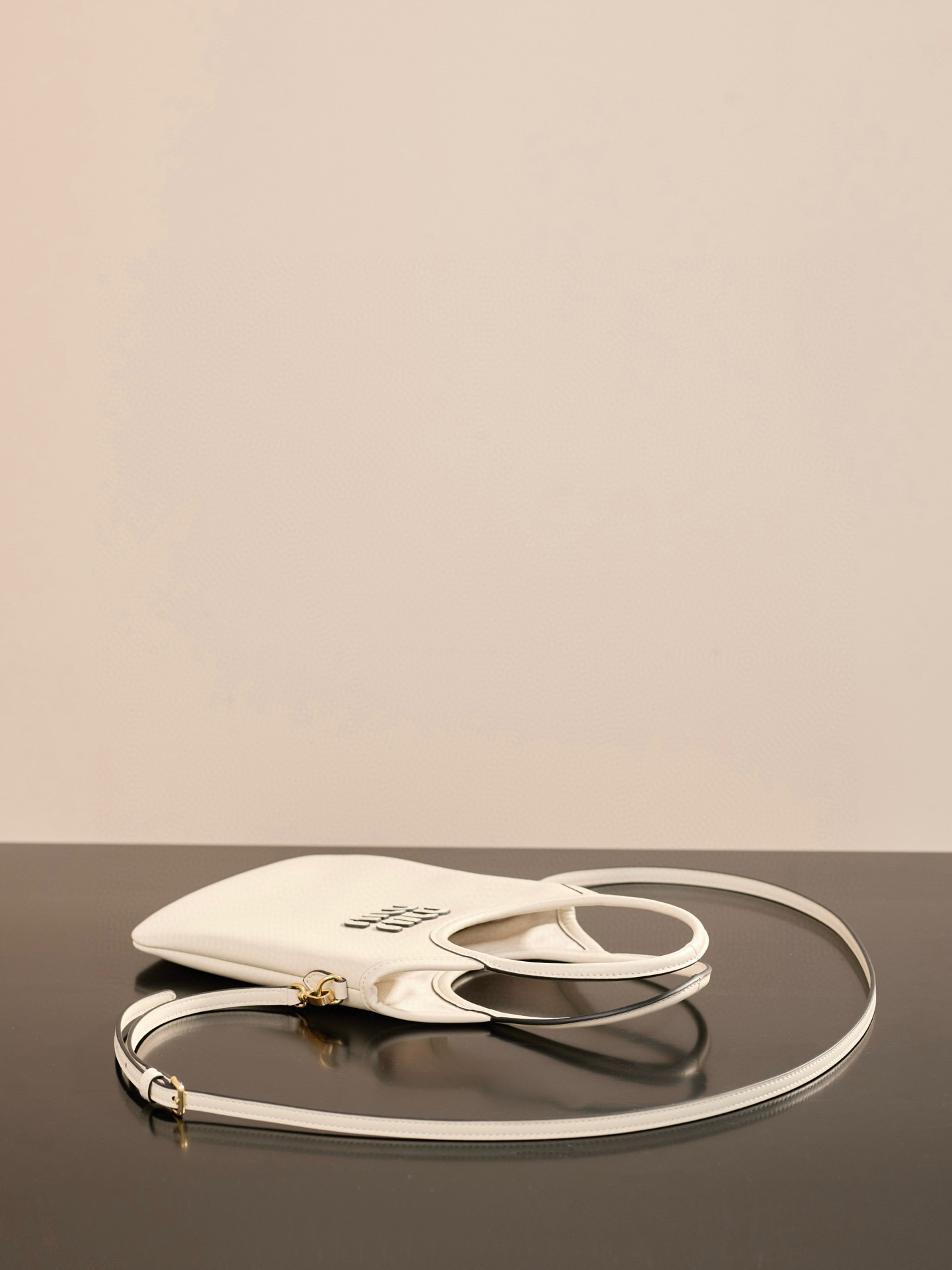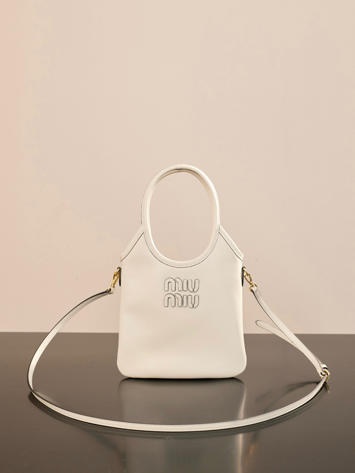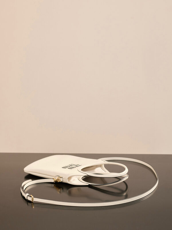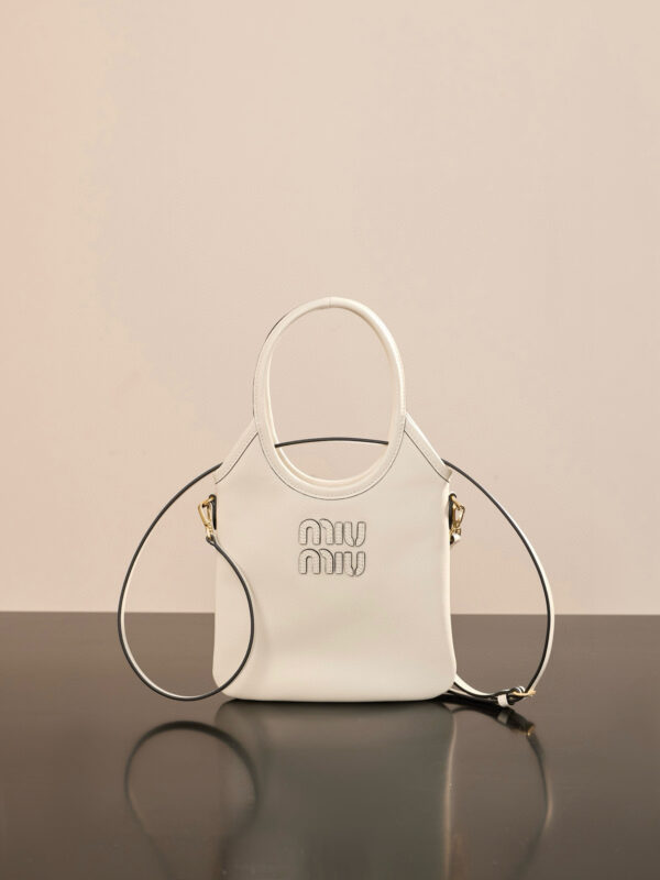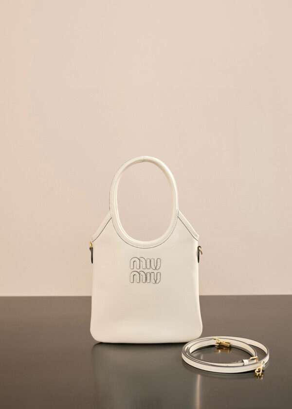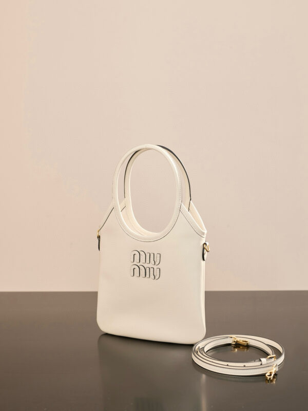 미우미우 아이비 미니 토트 백은 고급 소가죽으로 제작되어 부드럽고 섬세한 질감을 자랑합니다.