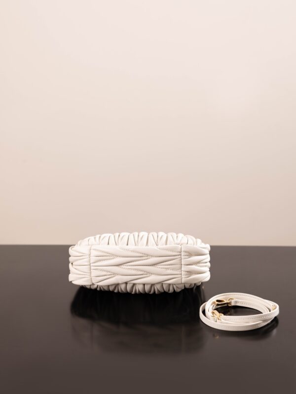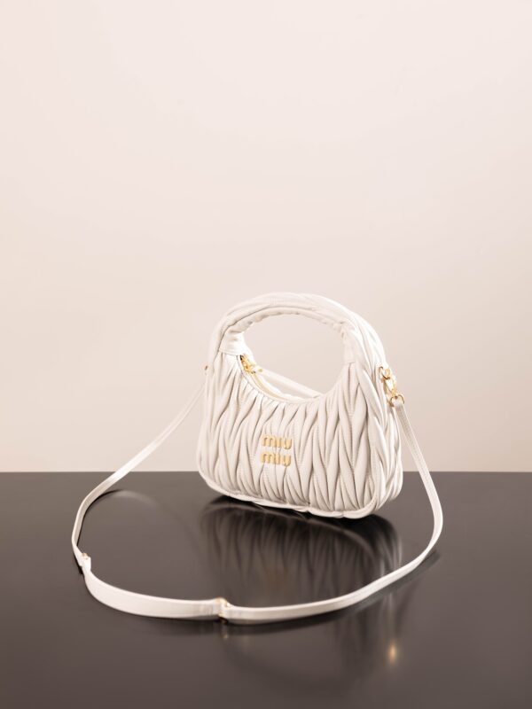 미우미우의 완더 호보 소형 백은 정교한 공예로 입체적인 효과를 자랑합니다.