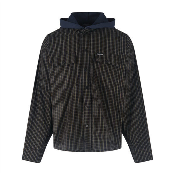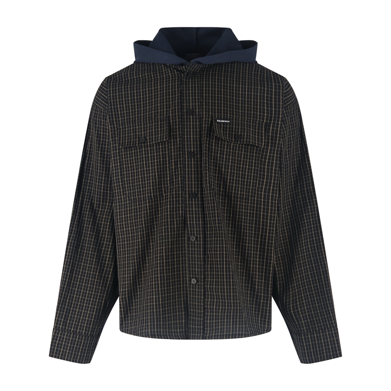 - 발렌시아가 【잔디집2】 로고 체크 패치워크 후드 집업 자켓은 후드가 달린 집업형 아우터입니다.