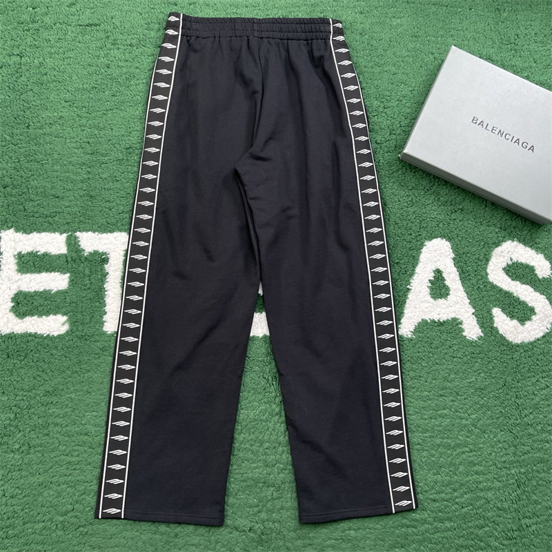 - 발렌시아가에서 제작한 스트라이프 패턴 배기 팬츠로 편안한 착용감을 제공합니다.