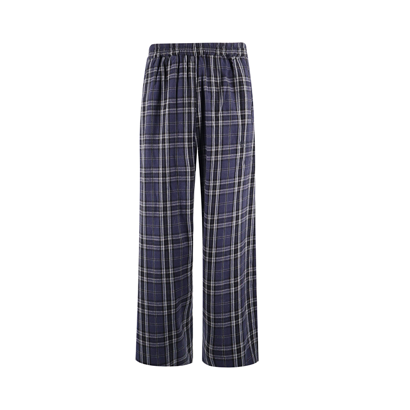 - 체크 패턴 플란넬 소재로 제작된 배기 팬츠입니다.
