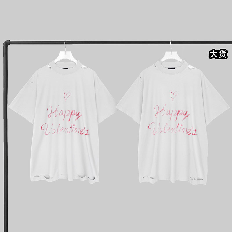- 이 제품은 발렌시아가 브랜드의 티셔츠로, 발렌타인 립스틱 그래픽이 디자인된 반팔 상의입니다.
