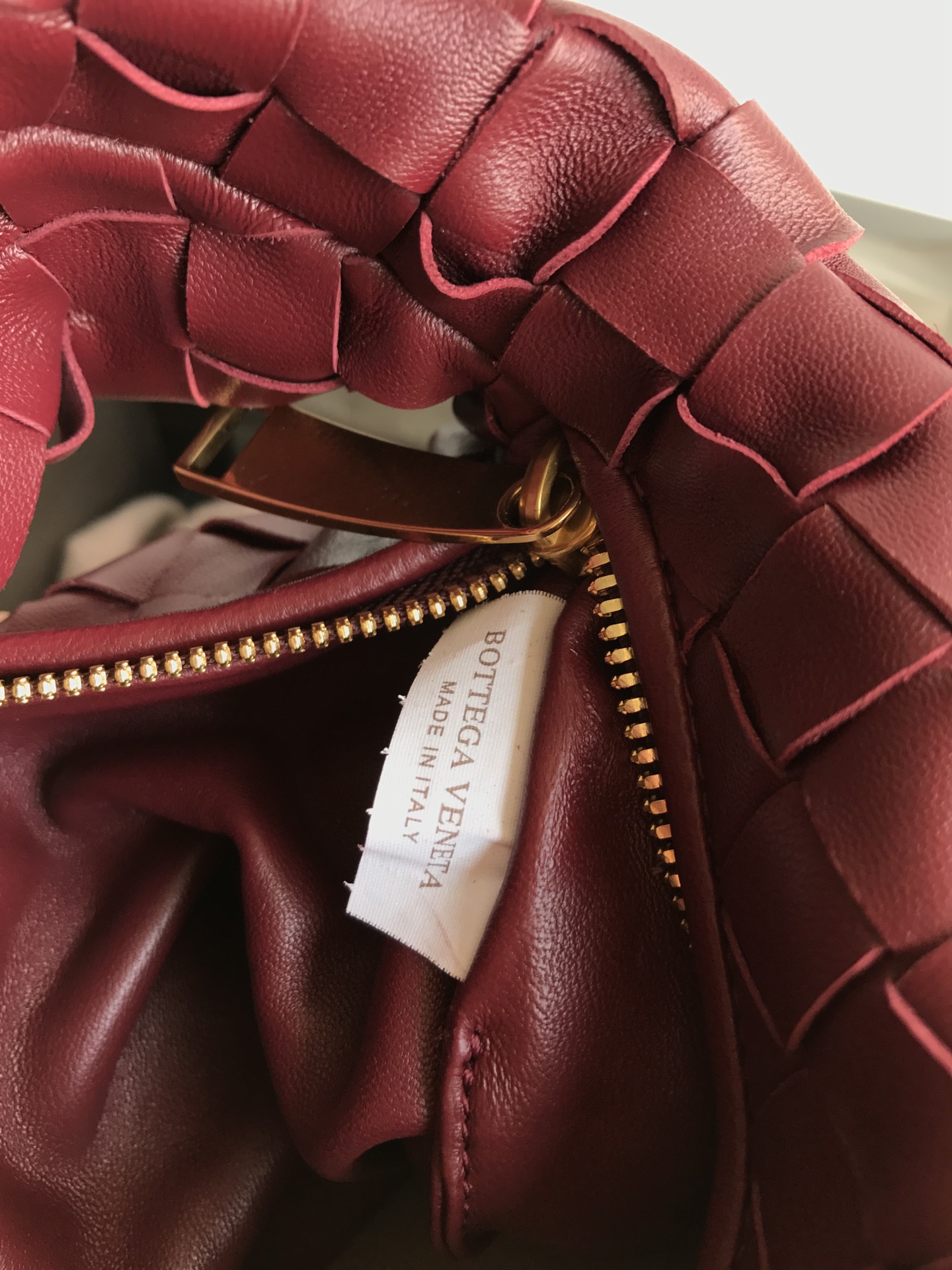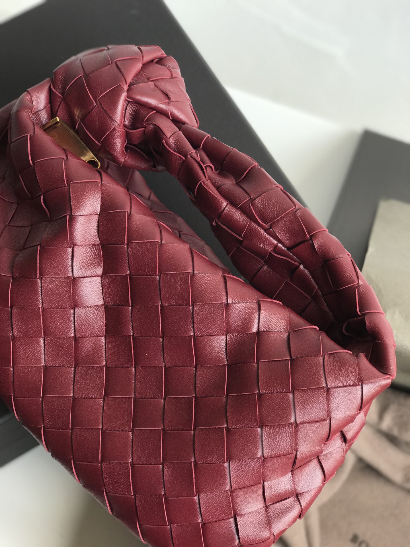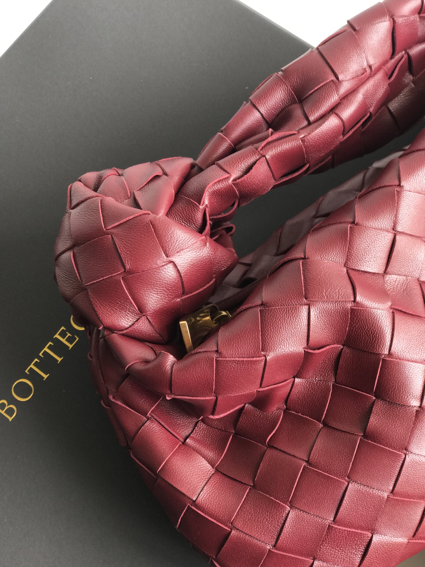 보테가 베네타의 미니 조디 호보백은 최신 편직 가죽으로 제작되어 부드러운 느낌을 줍니다.