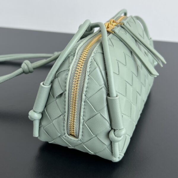 보테가 베네타의 미니 파우치는 클래식한 인트레치아토(직조) 디자인으로 세련된 매력을 더합니다.