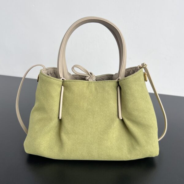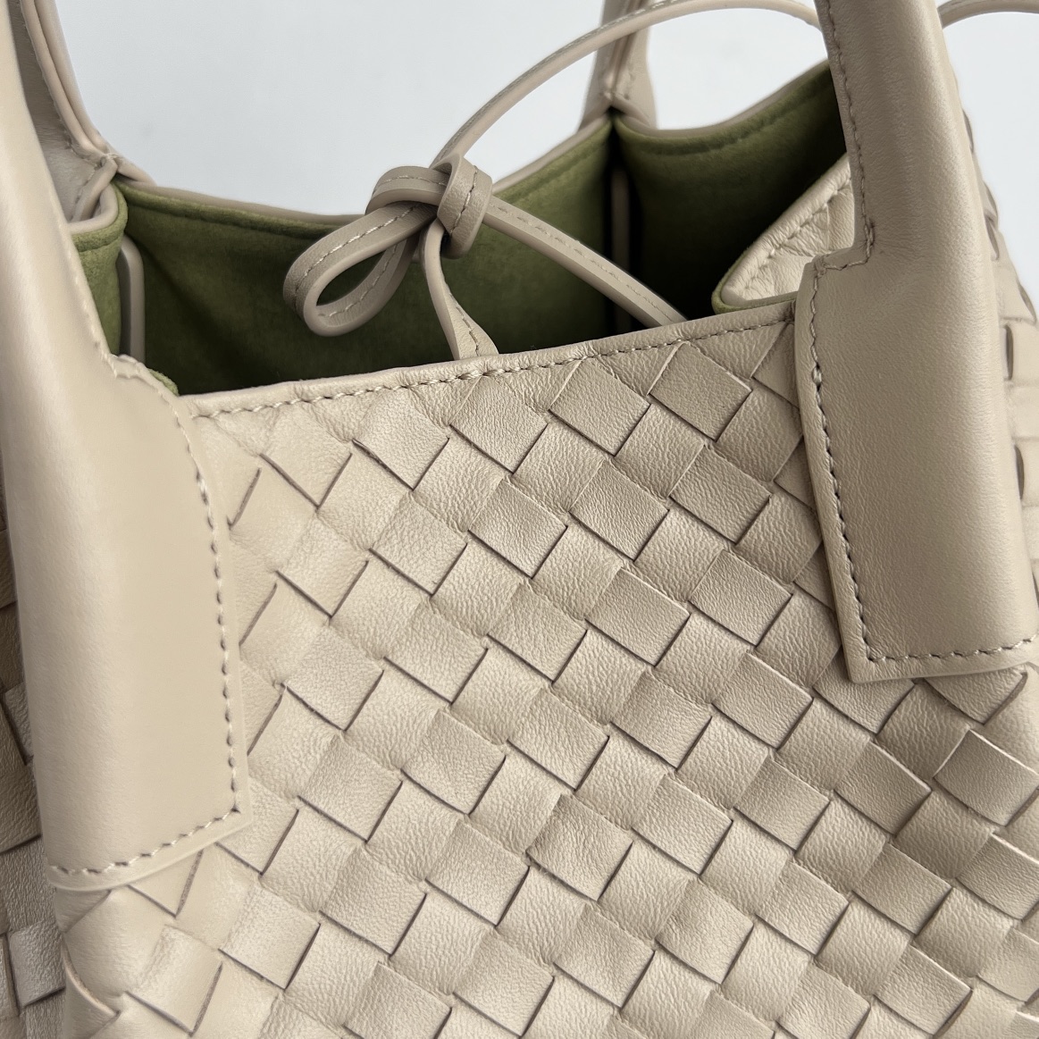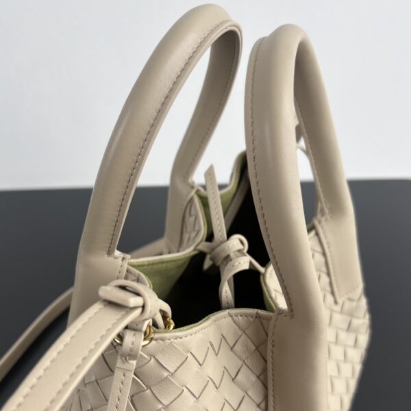 보테가 베네타의 피나코테카 미니 토트백은 브랜드의 상징적인 엮음 공예로 제작되었습니다.