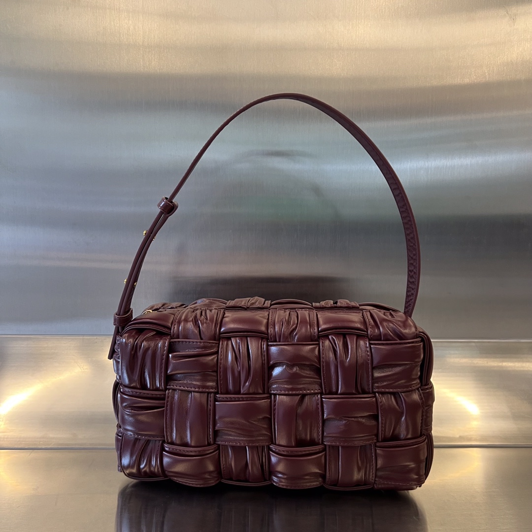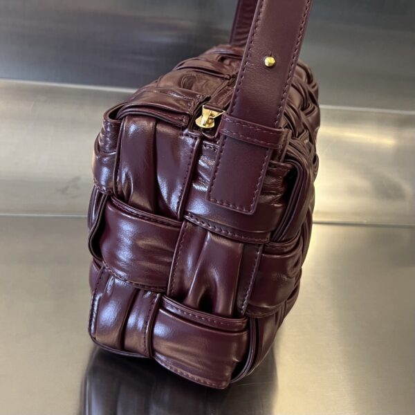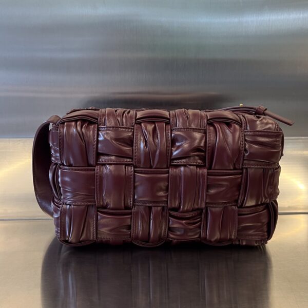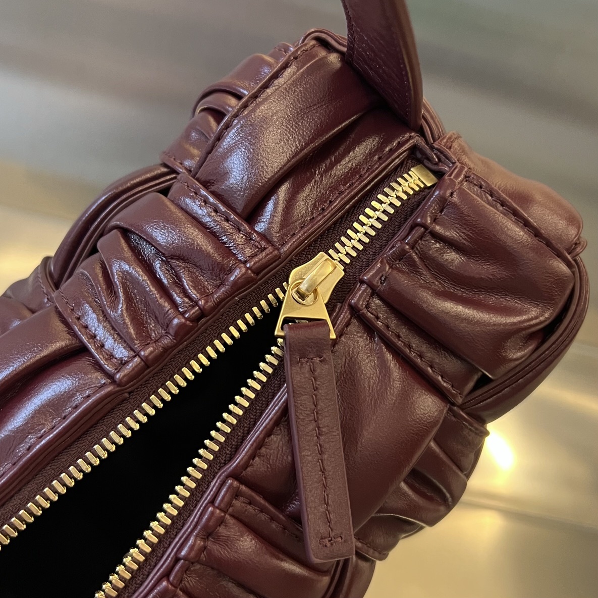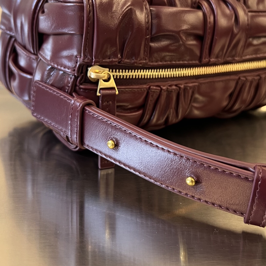 보테가의 새로운 디자인이 돋보이는 복조리 백입니다. 독창적인 손으로 짠 주름 공예 기술이 적용되어, 전체적으로 아름다움을 더합니다.