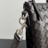 내부에는 지퍼 분리 공간과 두 개의 작은 포켓이 있어 여행 시 필요한 물품을 효율적으로 수납할 수 있습니다. 어깨끈은 탈부착이 가능해 손으로 들거나 어깨에 메고 다닐 수 있어 편리합니다.