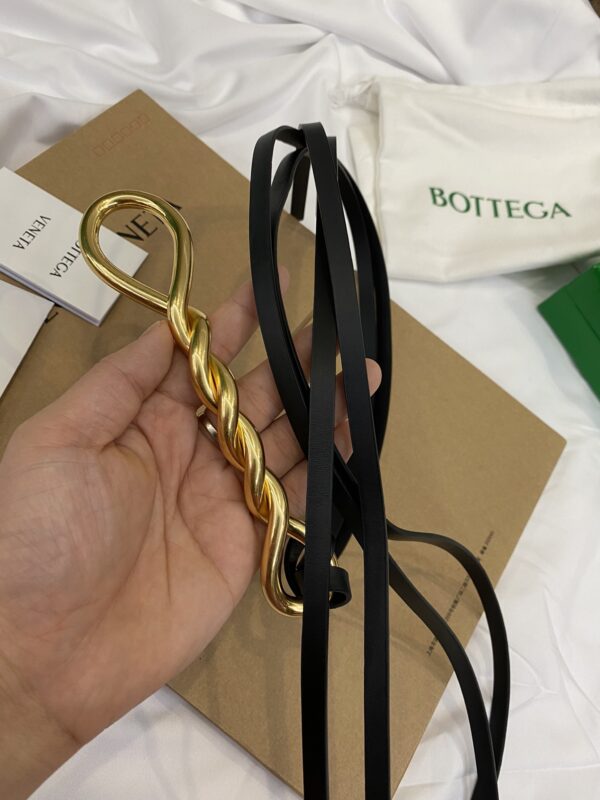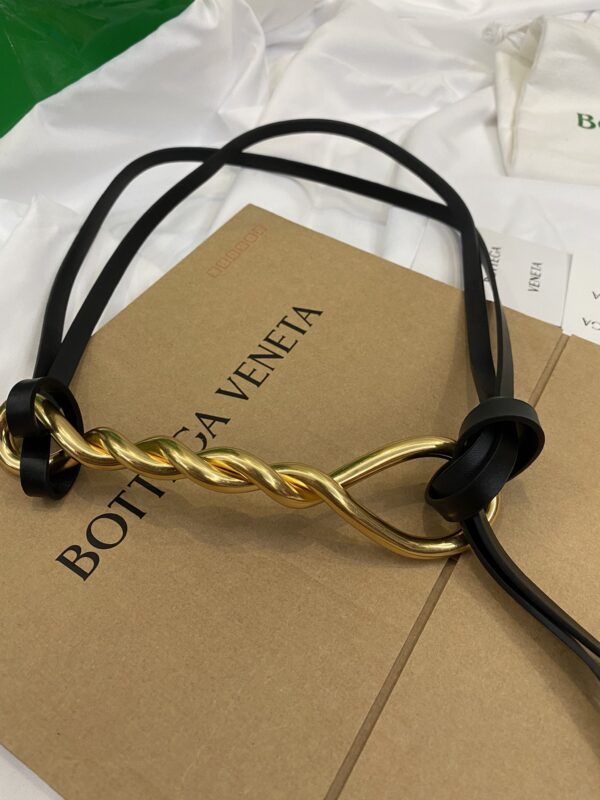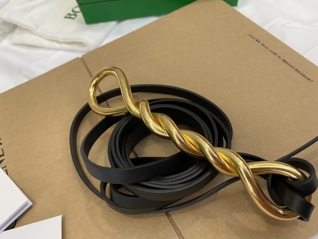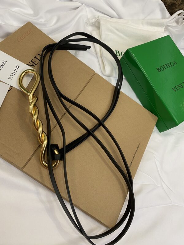고급스러운 소가죽 소재로 제작된 꼬임 디테일 벨트입니다.