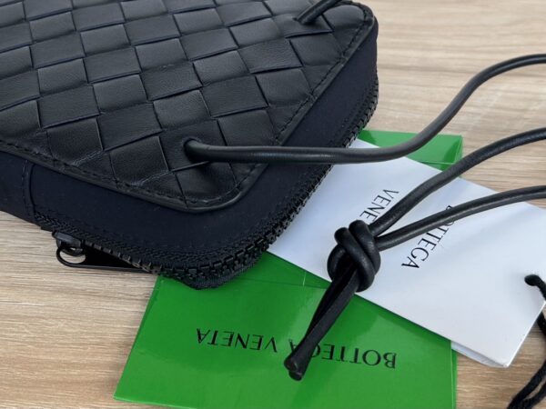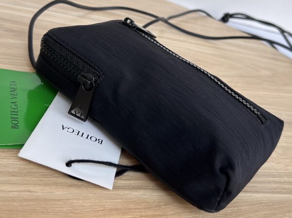 부드러운 나일론 소재와 클래식한 양가죽 편직이 조화를 이루는 모바일 백입니다.