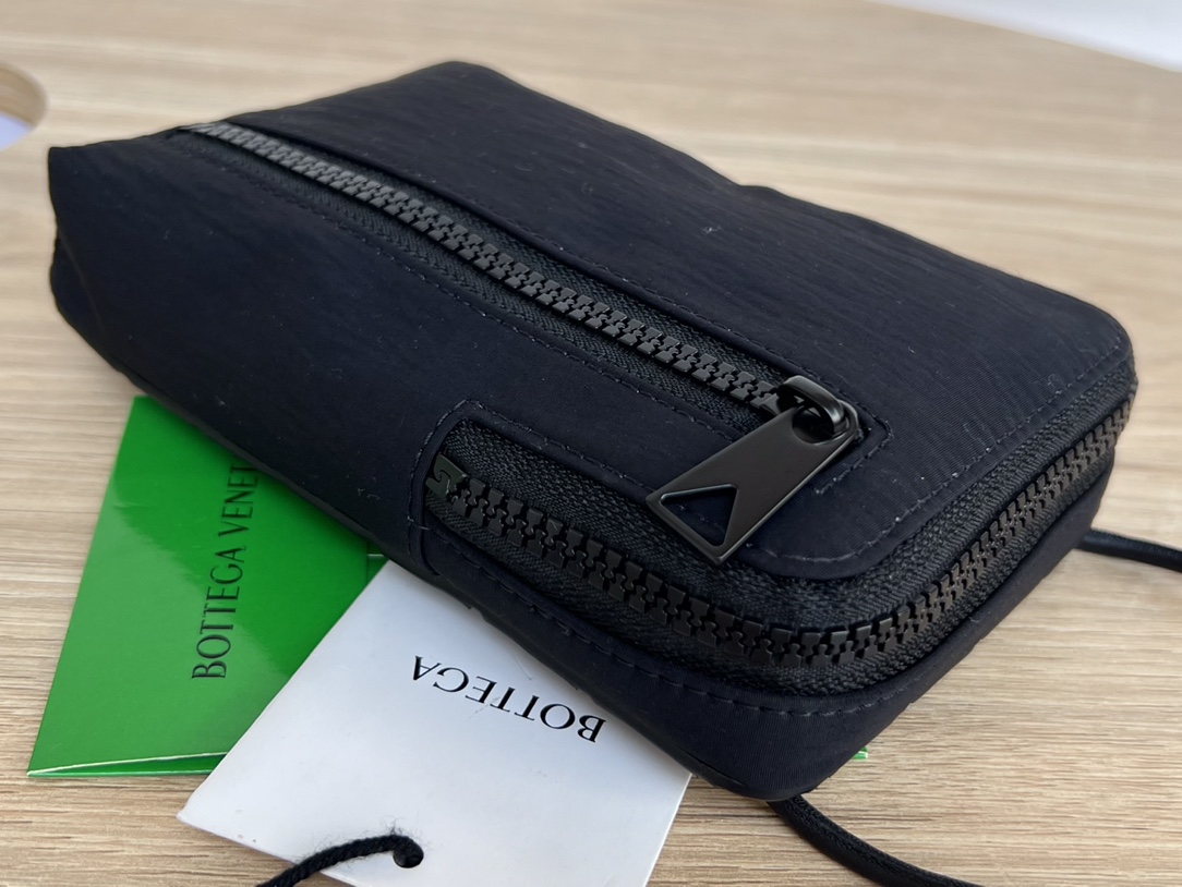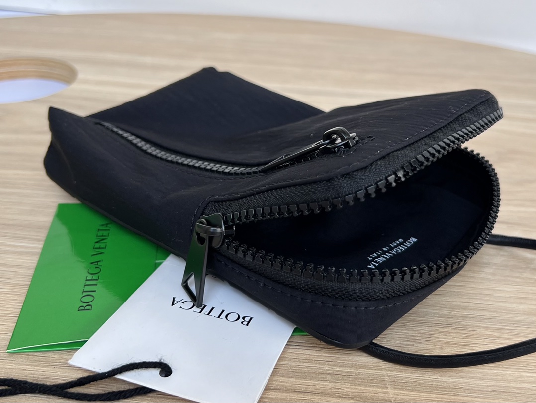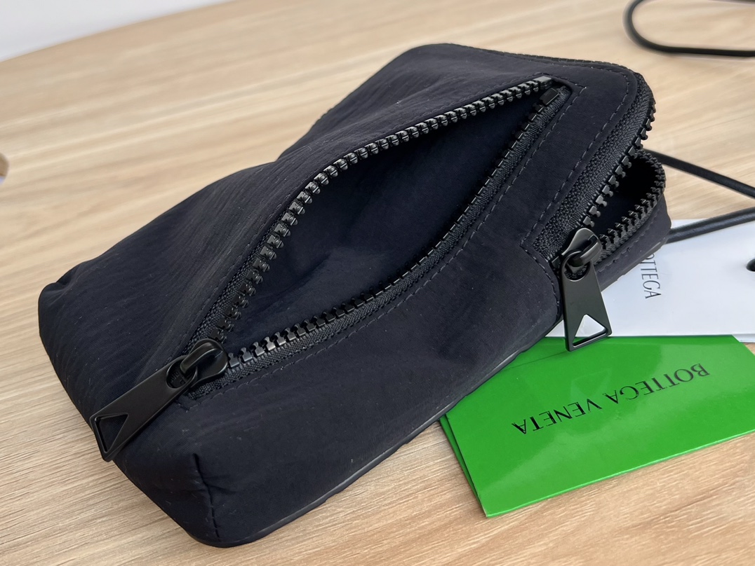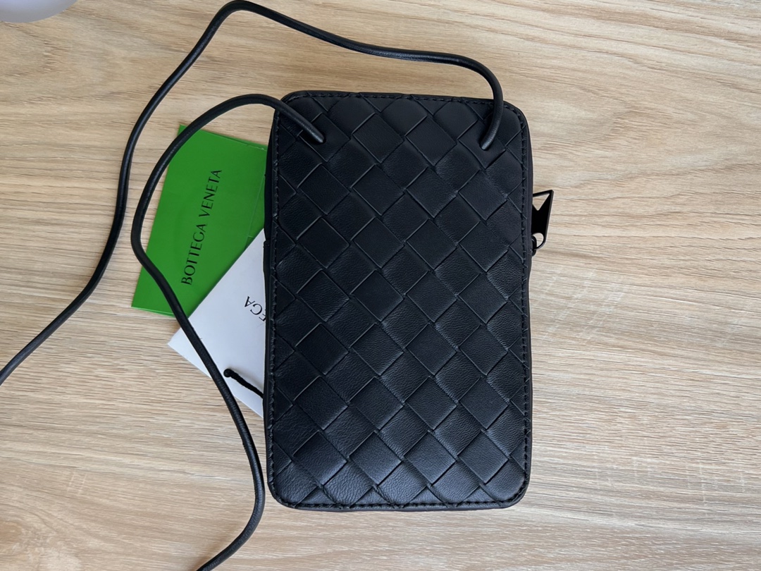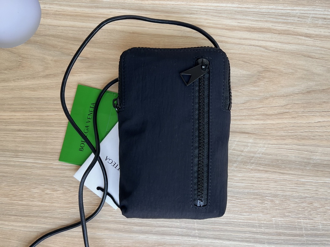 부드러운 나일론 소재와 클래식한 양가죽 편직이 조화를 이루는 모바일 백입니다.