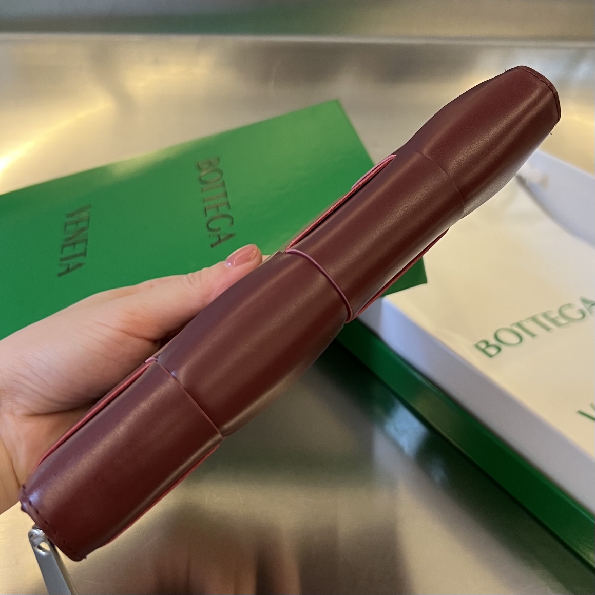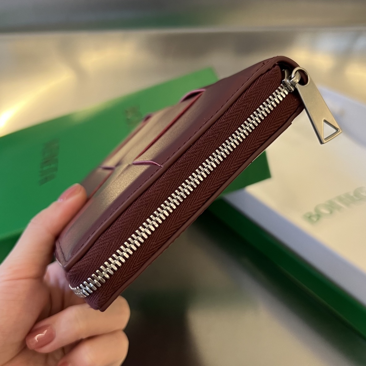 부드럽고 편안한 질감의 클래식 편직 소가죽으로 제작된 지갑입니다.