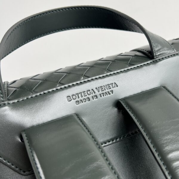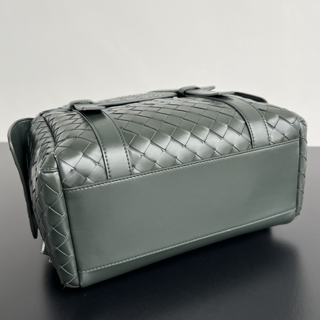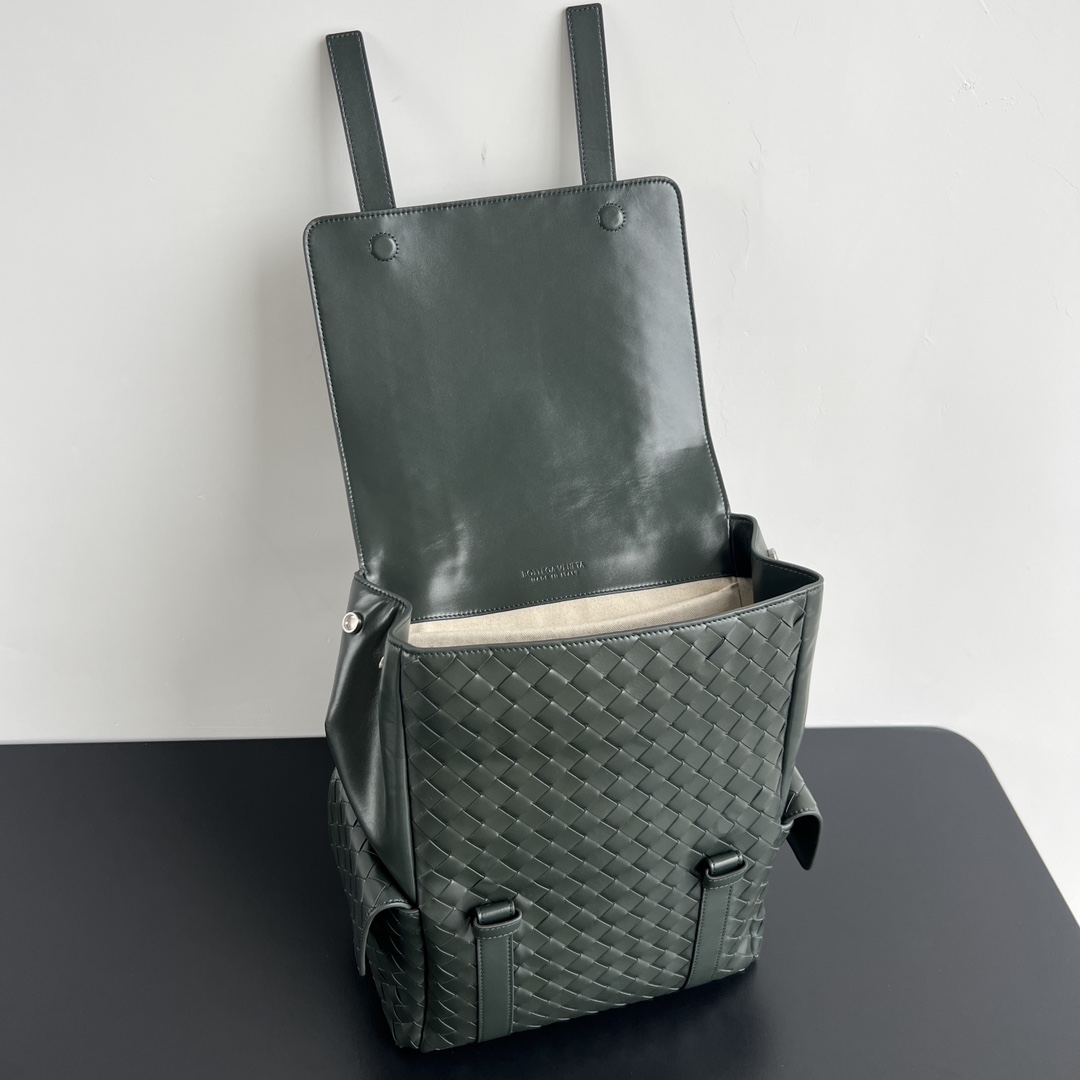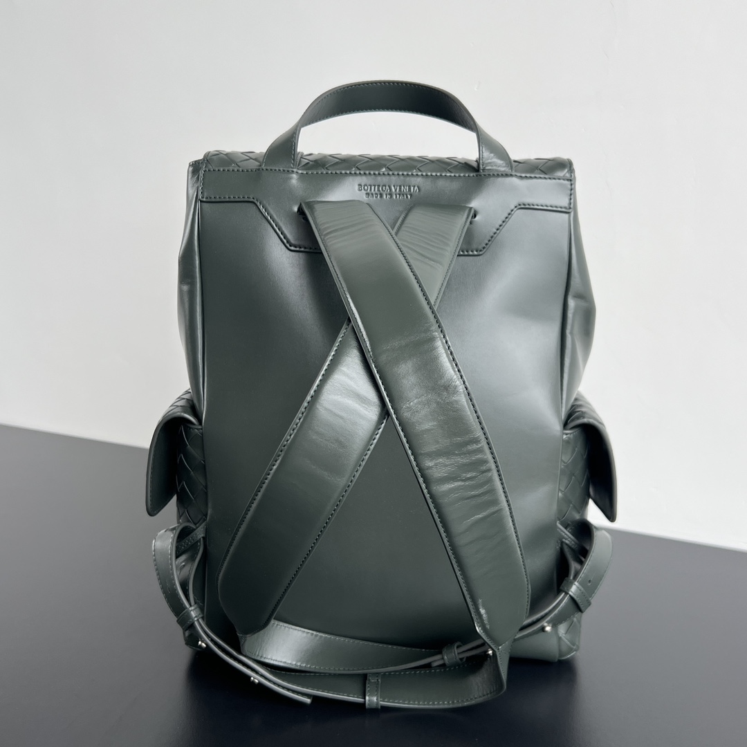 부드러운 소가죽으로 제작된 보테가의 남성 더블 백팩입니다. 세밀하게 손으로 엮은 패턴이 돋보이며, 입체적인 질감이 고급스러움을 더합니다.