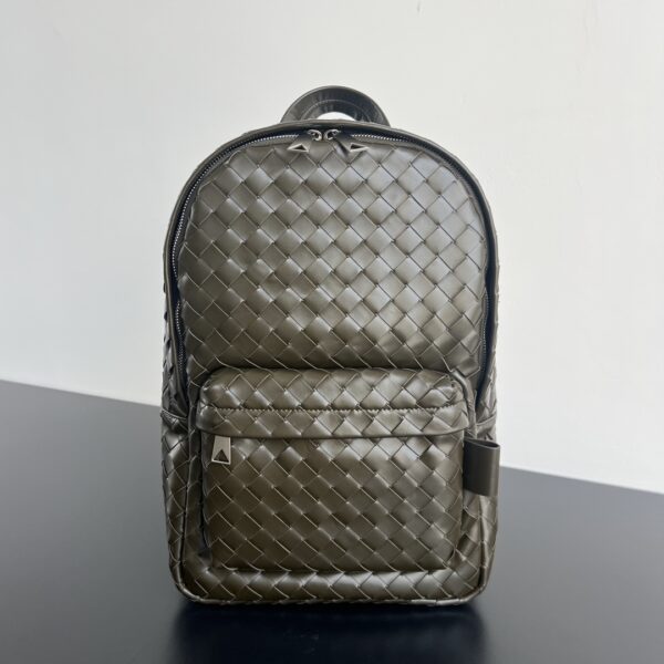 부드럽고 편안한 소가죽으로 제작된 클래식한 편직 공예의 백팩입니다.