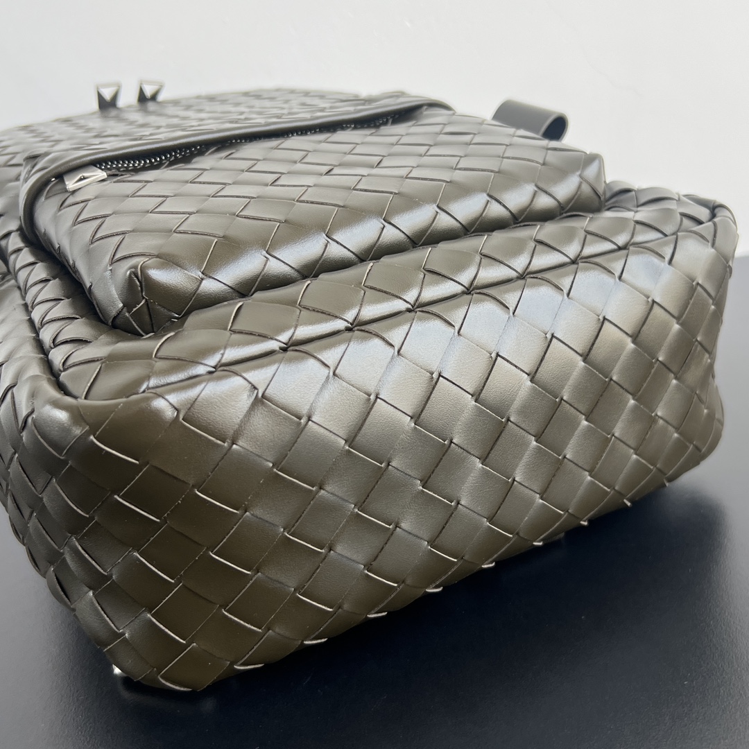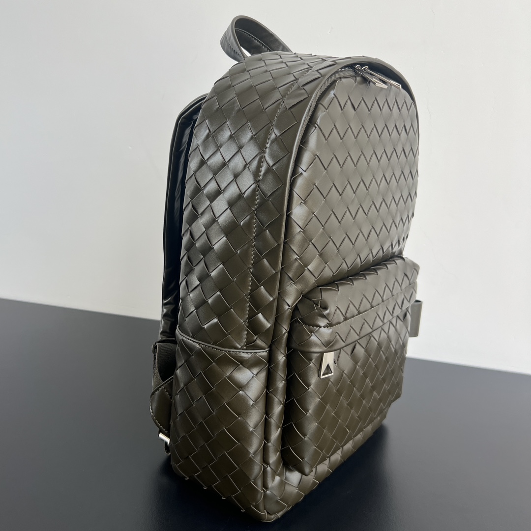 부드럽고 편안한 소가죽으로 제작된 클래식한 편직 공예의 백팩입니다.