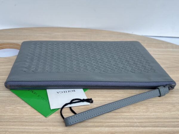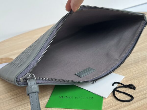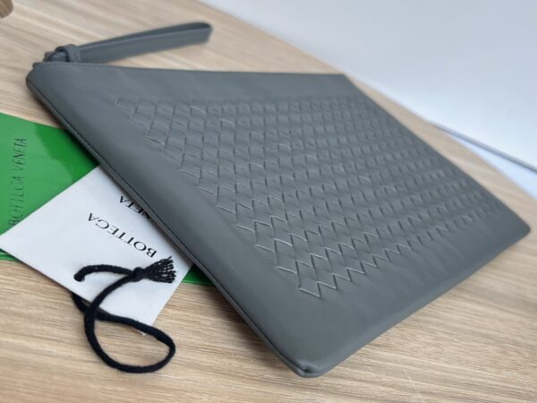 고급 소가죽 소재로 제작된 남성 손가방입니다. 부드럽고 매끄러운 질감이 특징이며, 손잡이가 포함되어 있어 편리한 사용이 가능합니다.