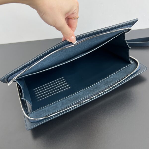 지퍼로 여닫을 수 있으며, 내부에는 카드 슬롯이 있어 실용성이 뛰어납니다. 탈부착 가능한 손목 스트랩이 있어 사용이 편리합니다.
